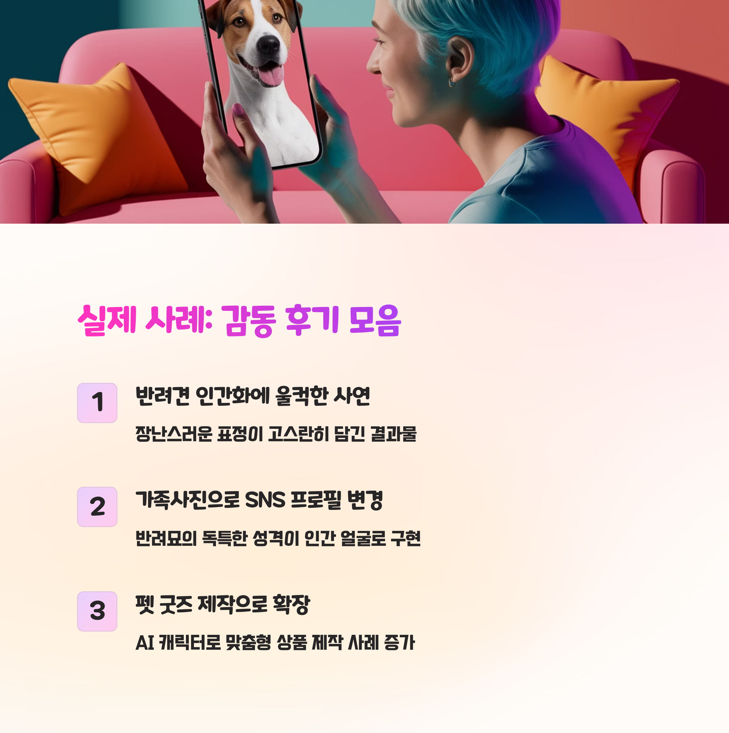 | 무엇이 유행일까? | AI로 반려동물을 사람처럼 바꾸는 이미지 콘텐츠 |