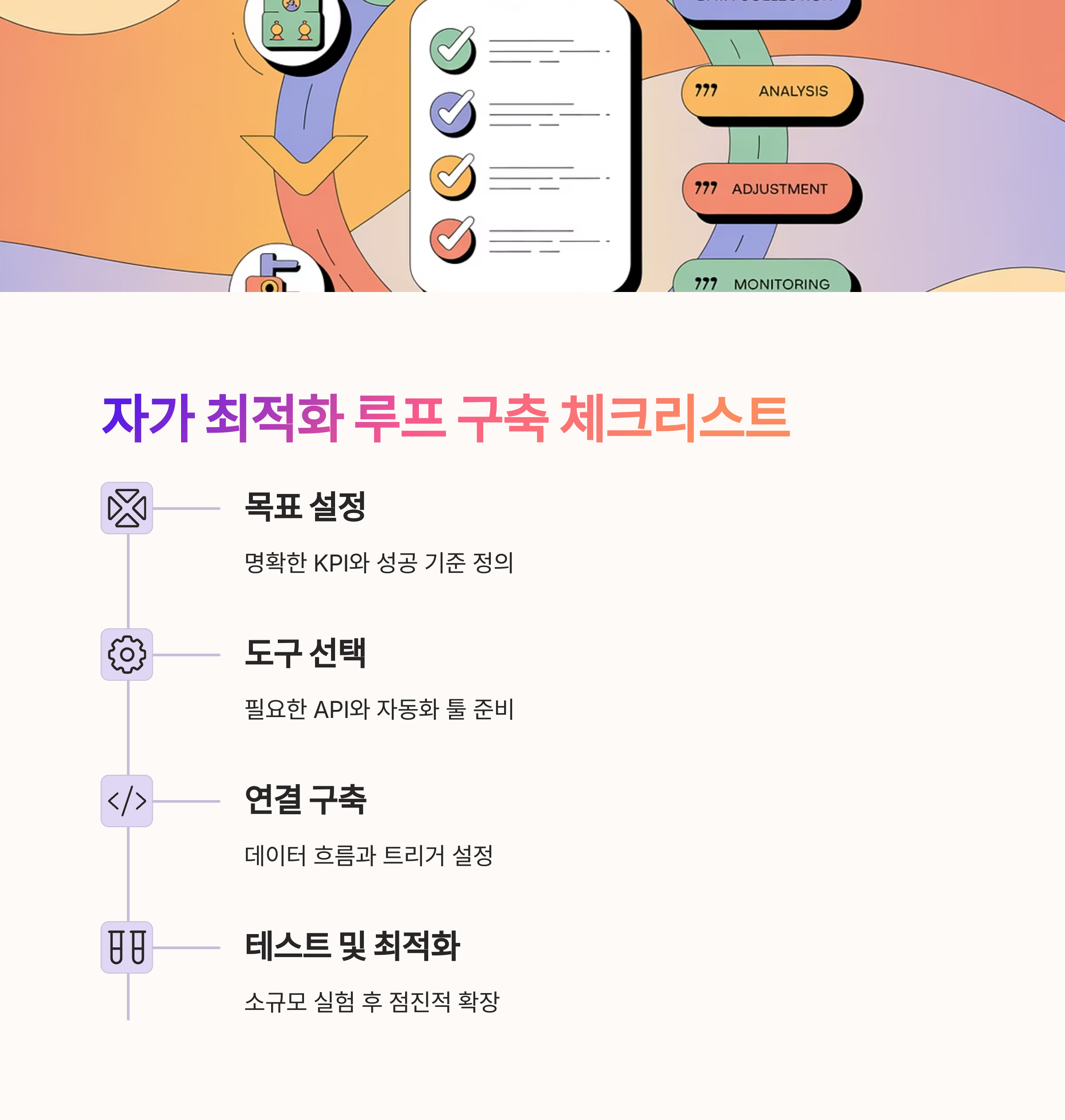그래서 루프 설계 초기에는 월 1회 피드백 회고가 필요합니다. 자동화도 점검 없이 반복되면 ‘의미 없는 반복’이 되기 쉽습니다.