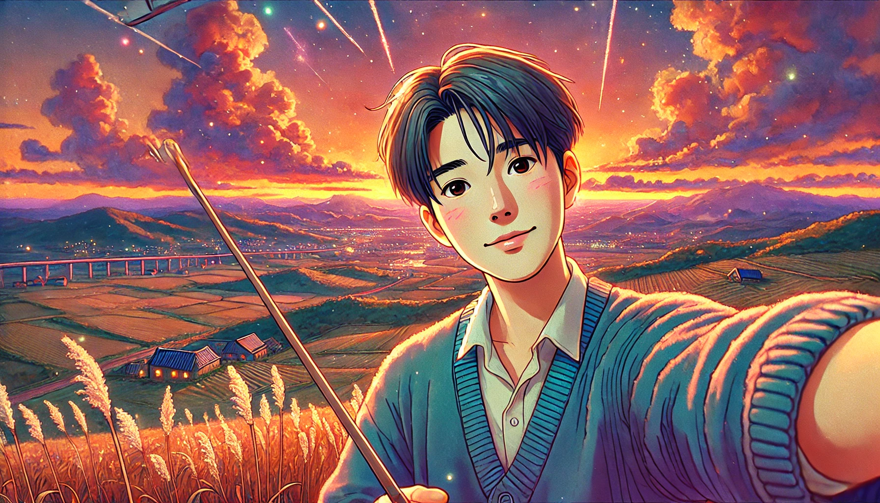| 배경 연출 | “sunset field, soft breeze, glowing sky” | 장면 몰입 |