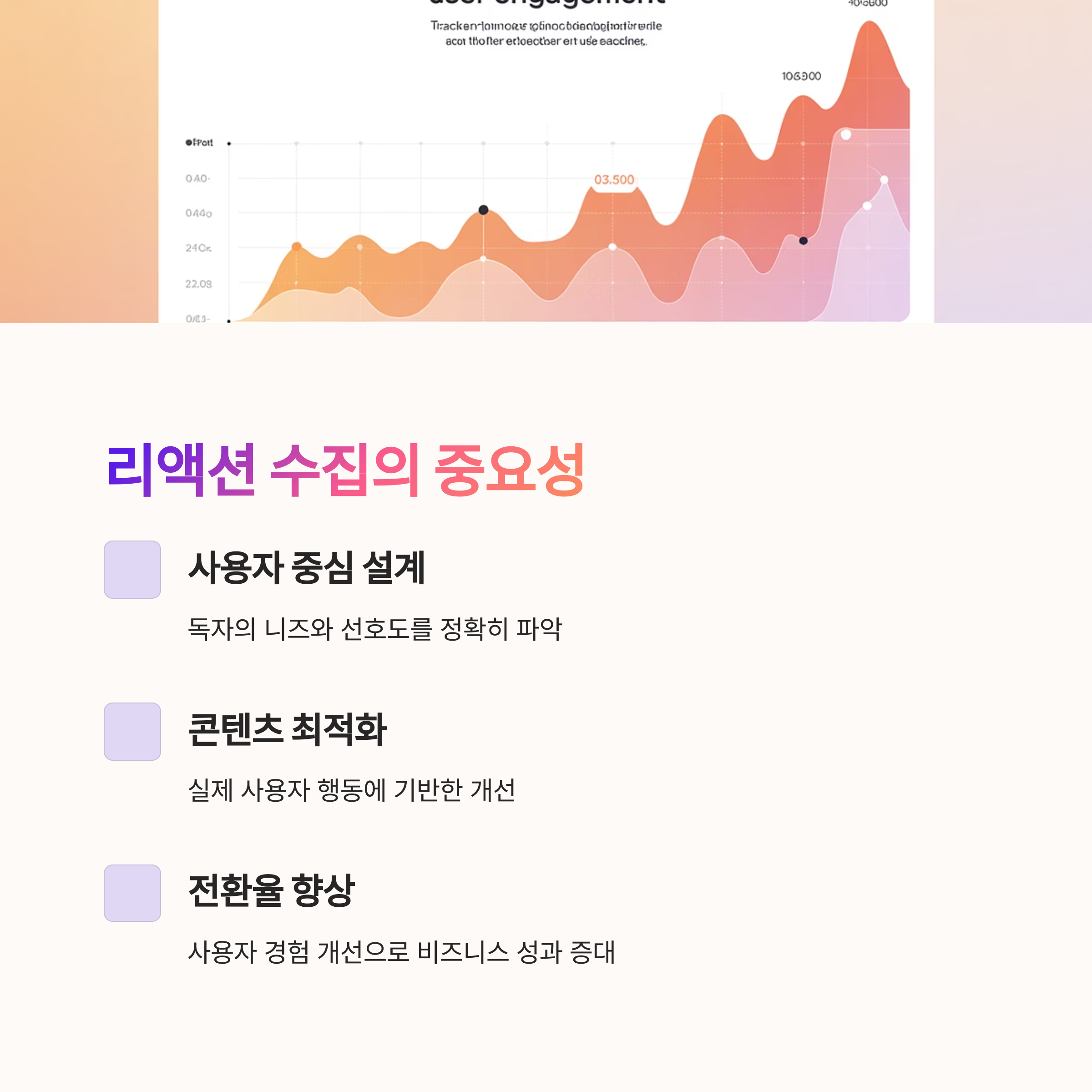 여러분도 혹시 이런 경험 있으신가요? 고심 끝에 쓴 글인데 댓글도 없고, 반응도 없고, 왜 반응이 없는지도 알 수 없을 때. 놓쳤던 건 ‘반응을 수집할 시스템’이 없었다는 사실이었습니다. 독자가 어디서 이탈했고, 어디서 공감했는지를 알 수 없으면, 개선도 할 수 없어요. 그래서 오늘은 실시간으로 UX 리액션을 수집하고, 그 데이터를 바탕으로 콘텐츠를 유연하게 최적화하는 전략을 소개하려 합니다. 지금부터 “정답은 독자가 안다”는 말이 진짜임을 증명해볼게요.