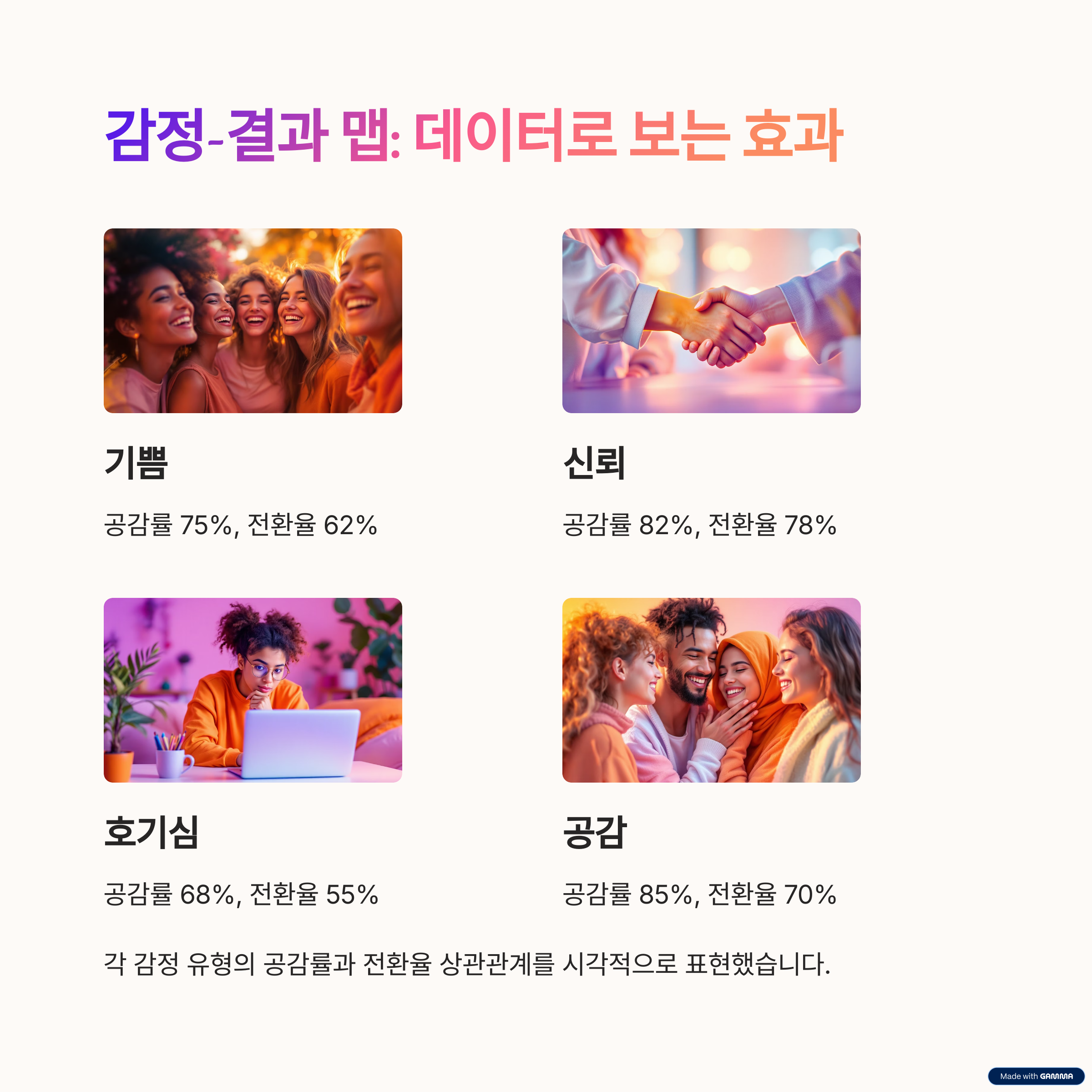 감정-결과 맵: 공감률과 전환율 상관 분석