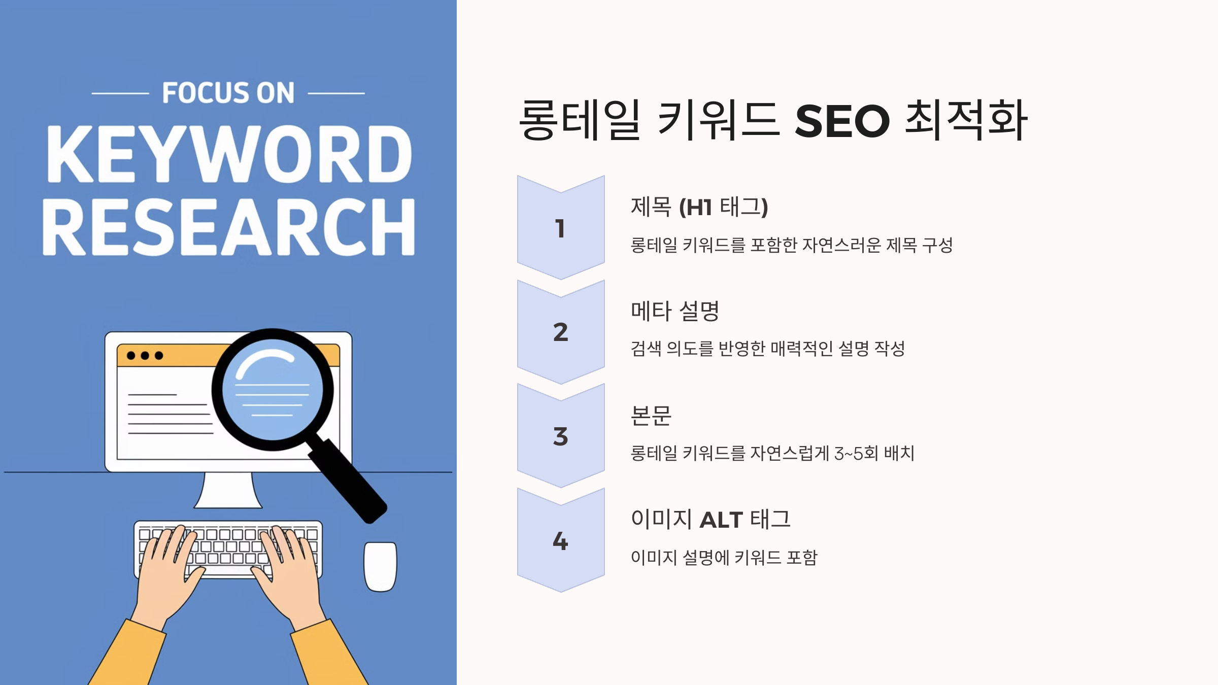 | 본문 | 롱테일 키워드를 자연스럽게 3~5회 배치 |