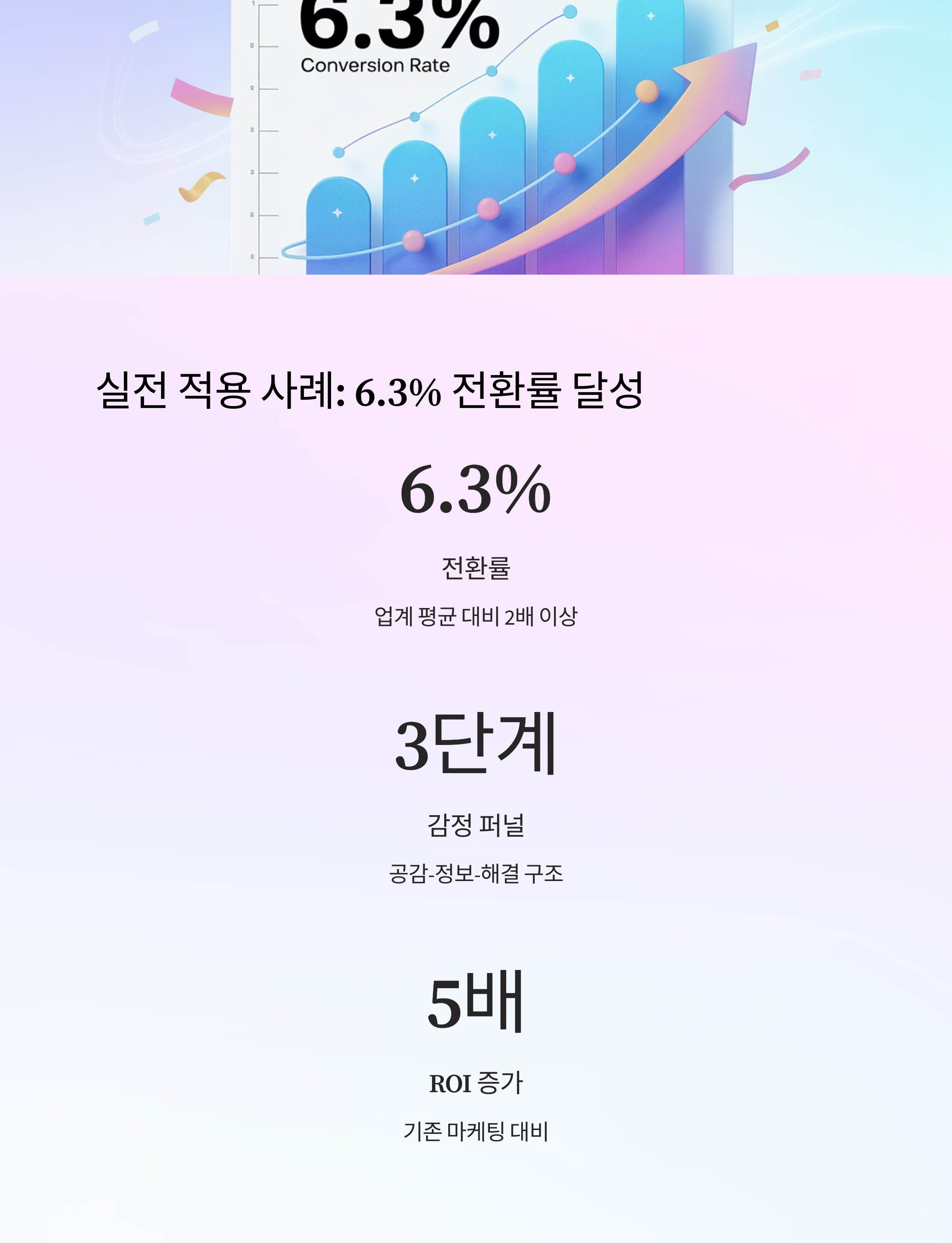 실제 고객 전환 퍼널에 감정 기반 콘텐츠 전략을 적용해 단 3주 만에 전환률을 6.3%까지 끌어올린 사례를 소개합니다. 콘텐츠 순서, 감정 흐름, CTA 위치, 리마케팅 연계까지 일관되게 설계한 결과입니다.