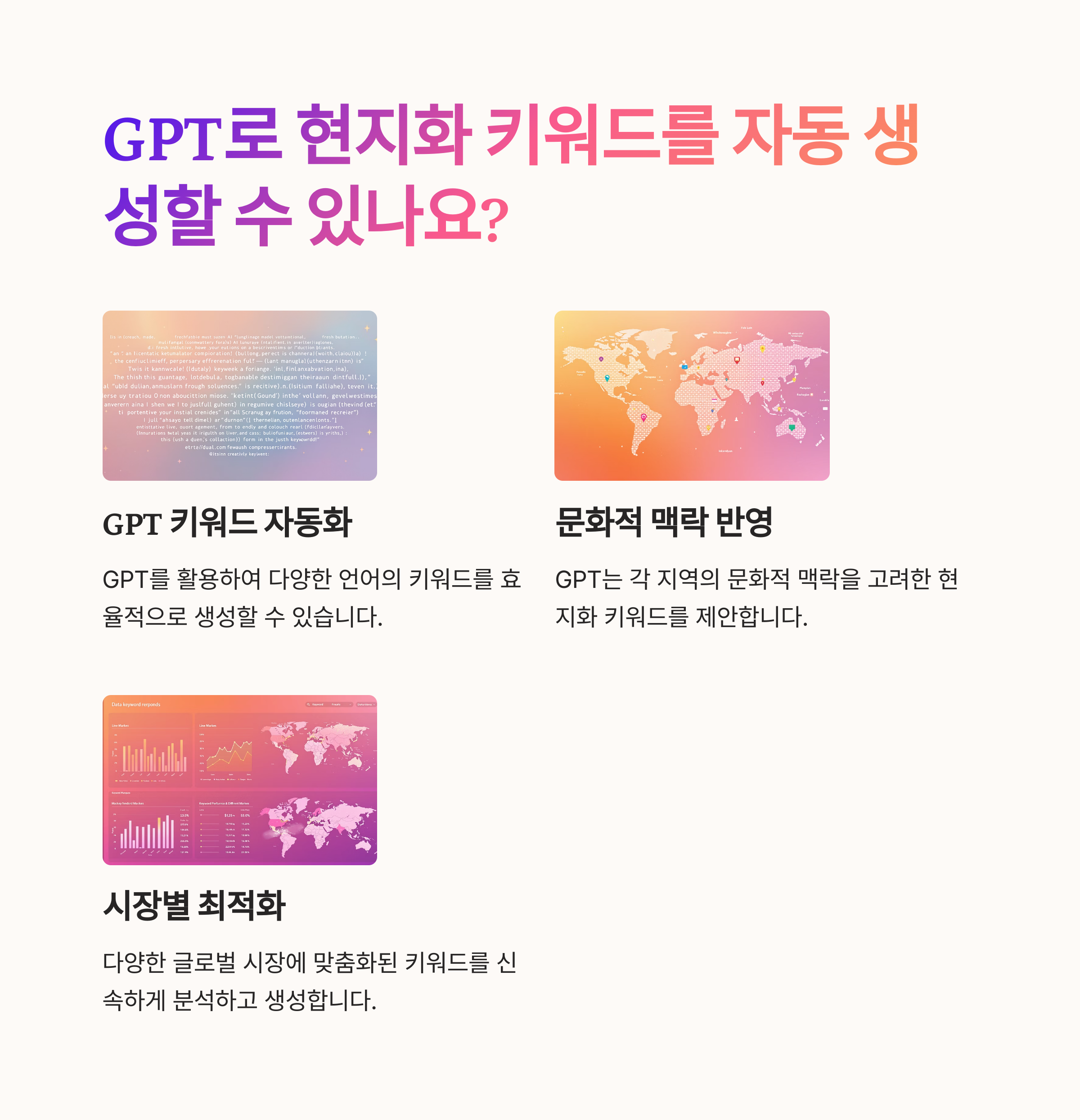 예전에는 국가별 키워드를 수작업으로 조사했지만, 지금은 AI 기반 툴 덕분에 훨씬 빠르고 정교하게 리서치할 수 있죠.