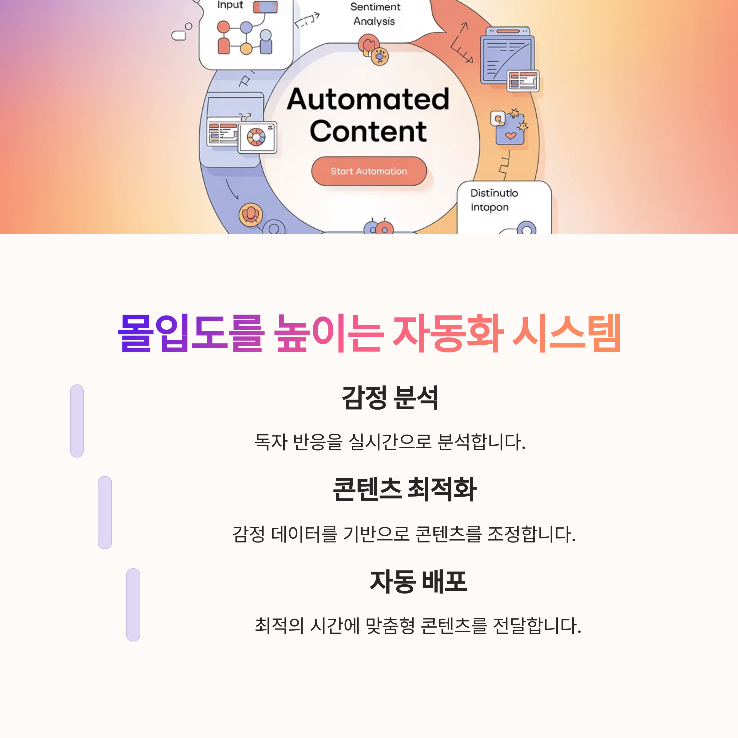 이제는 ‘사람의 감정 흐름’을 이해하는 시스템이 필요합니다. 그리고 그 시스템이 콘텐츠 자동화에 탑재될 때, 당신의 블로그나 뉴스레터는 단순한 정보 채널을 넘어 독자와 신뢰로 연결되는 감성 플랫폼이 될 수 있습니다. 자동화의 구조에 감정의 온도를 더하세요. 그것이 콘텐츠의 미래입니다.