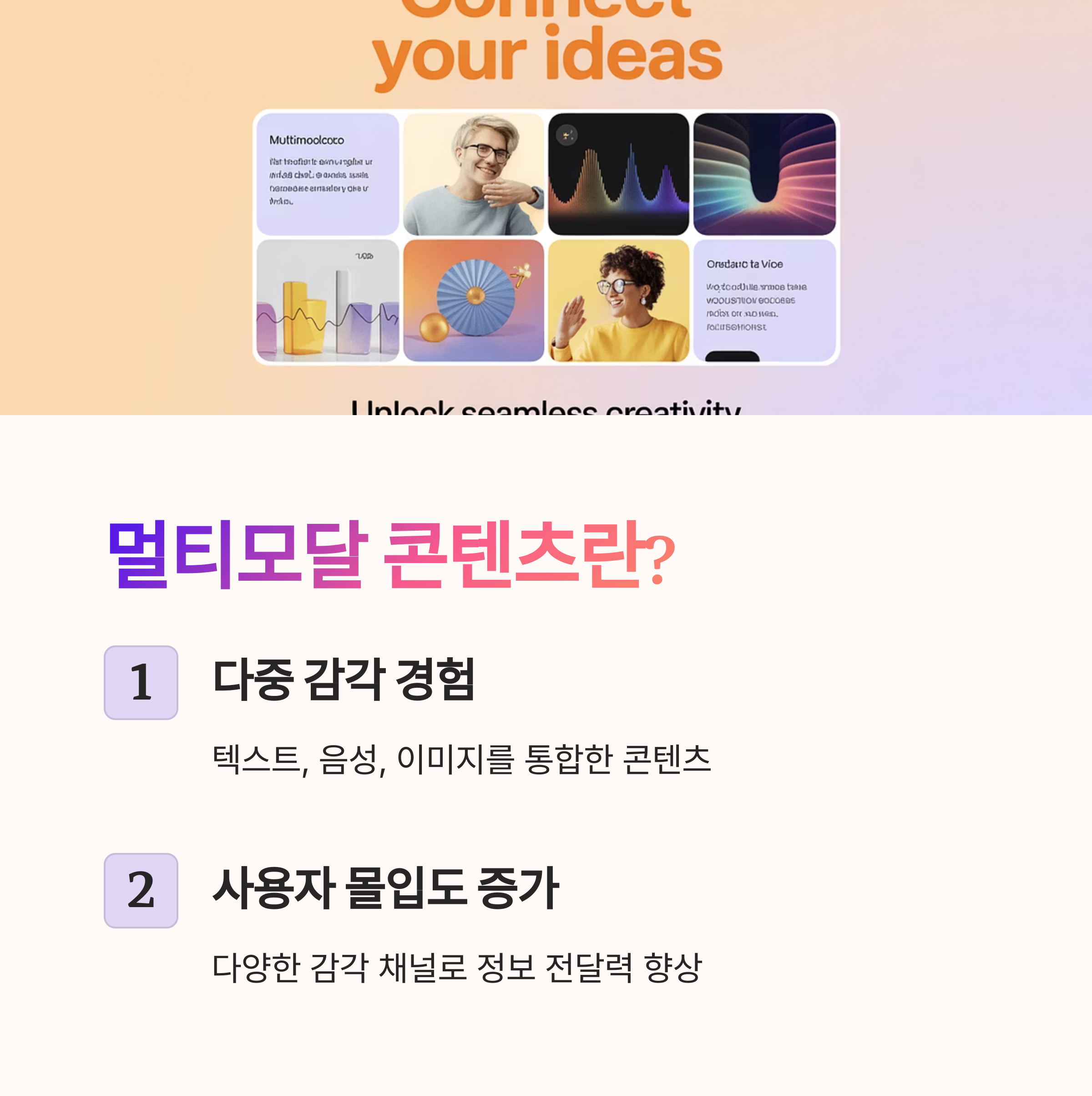 멀티모달 콘텐츠란, 한마디로 텍스트, 이미지, 음성 등 다양한 표현 방식이 한데 엮여 있는 콘텐츠를 말합니다. 요즘 MZ세대부터 실버 세대까지 한 채널에서 여러 감각을 동시에 자극하는 ‘복합 미디어 경험’을 원해요. 텍스트로만 채워진 블로그는 금방 스크롤 넘기지만, 이미지와 음성이 들어간 콘텐츠엔 머무는 시간이 2배 이상 늘어난다는 데이터도 있습니다. 트렌드의 핵심은 바로 ‘다중채널·다중포맷’ 동시 공략이에요.