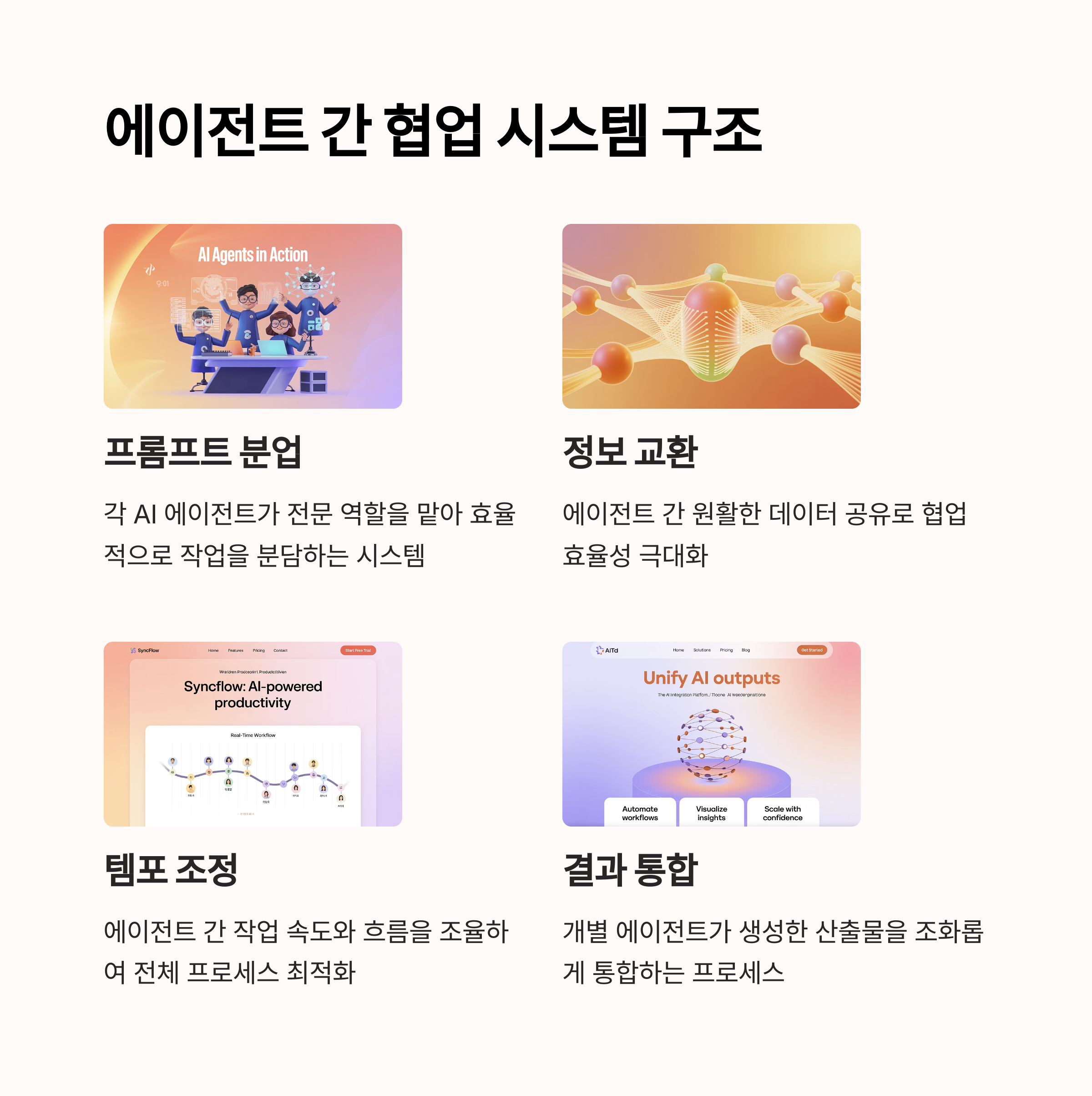 에이전트 간 협업 시스템 구조 (예: 프롬프트 분업, 템포 조정)