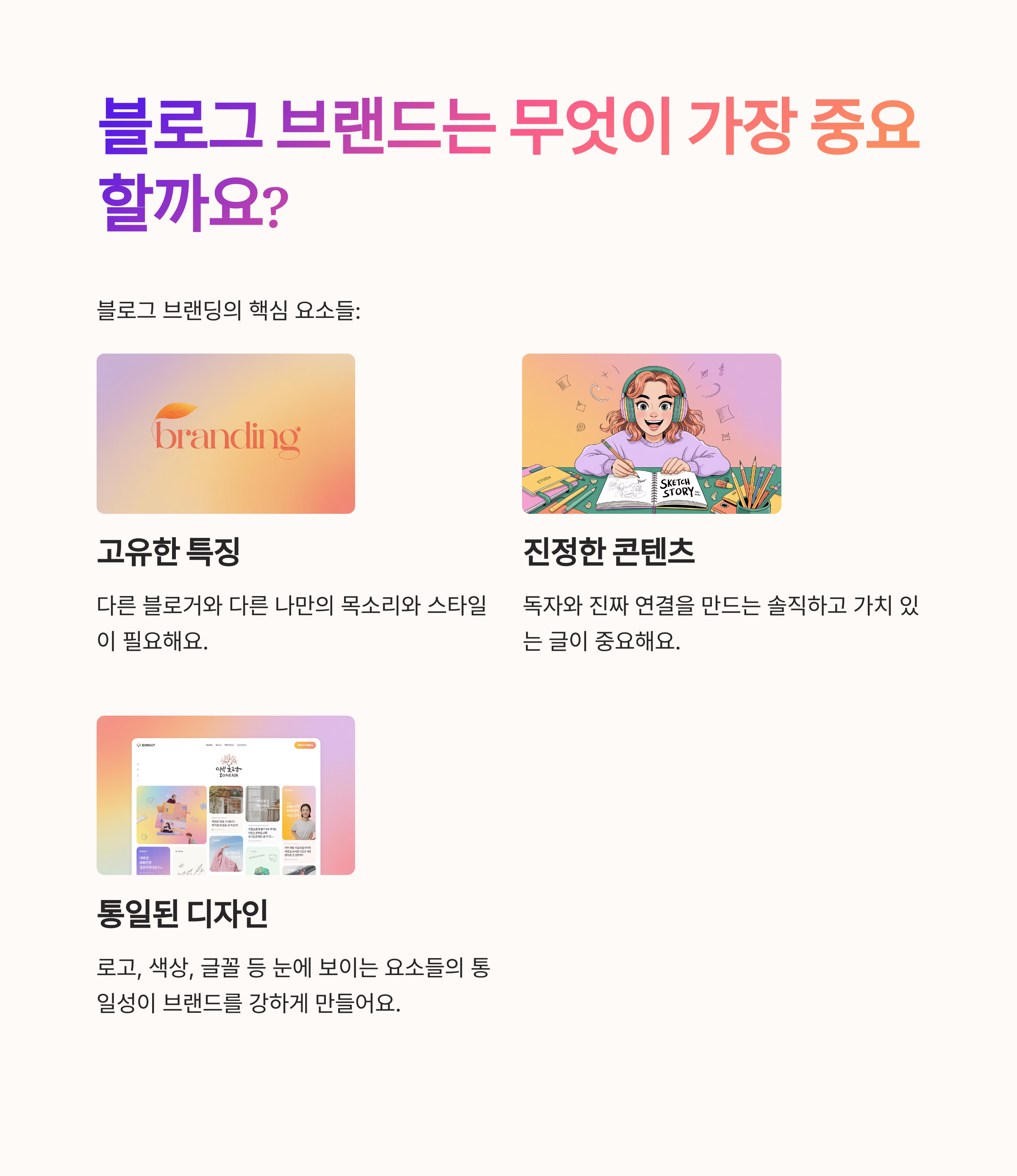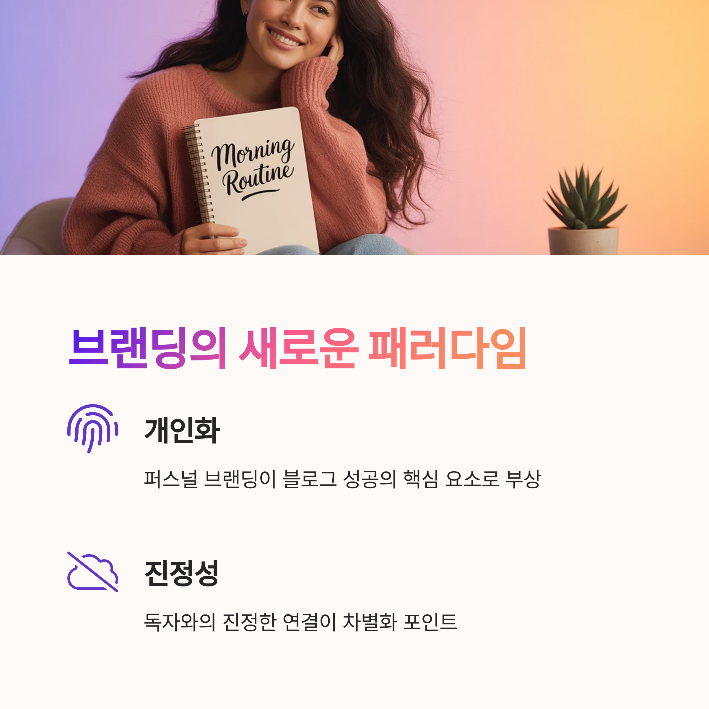 브랜딩은 이제 로고나 색깔이 아니라 ‘운영자의 태도와 가치관’으로 정의되고 있어요. 퍼스널 브랜드 역시 ‘1인 창작자’에서 ‘작지만 강한 커뮤니티 리더’로 진화 중입니다. 특히 블로그 운영자는 자신만의 언어, 시선, 행동 원칙을 일관되게 보여줄수록 강력한 브랜드로 인식됩니다. 아래는 최근 변화 키워드입니다.