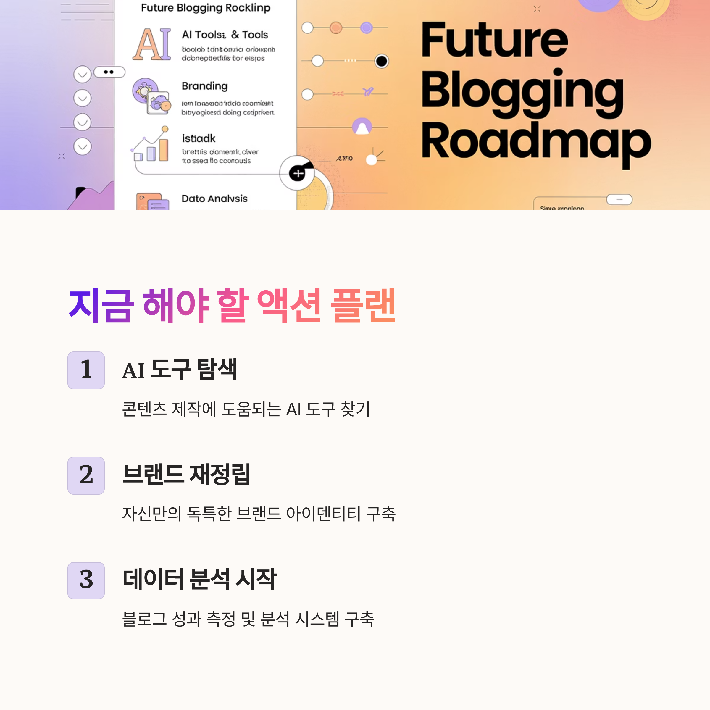 블로그는 이제 단순한 글쓰기 플랫폼이 아닙니다. 그것은 AI가 도와주는 나만의 브랜드 채널이자, 독자와 감정을 나누는 커뮤니티이며, 자동화된 시스템 위에서 전략적으로 운영되는 비즈니스입니다. 변화가 빠른 시대일수록, 미리 준비한 사람만이 다음 흐름을 리드할 수 있어요. 여러분의 블로그는 지금, 어떤 준비를 하고 있나요? 이 글이 미래를 향한 첫걸음이 되길 바랍니다.