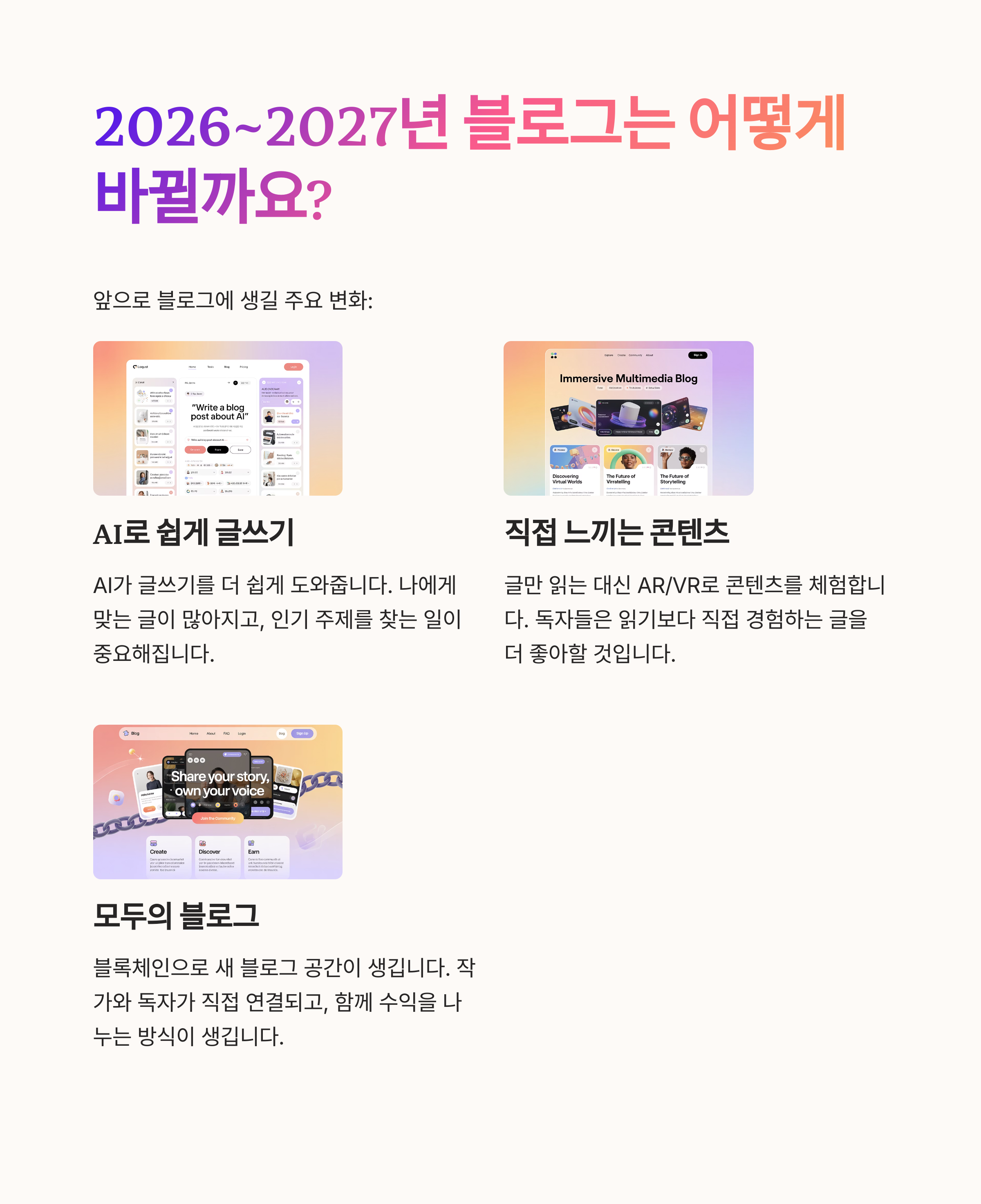 변화는 기다려주지 않습니다. 지금 내가 쓰는 블로그가 내년에도 통할까요? 미래형 블로그 전략, 지금부터 준비해야 합니다.