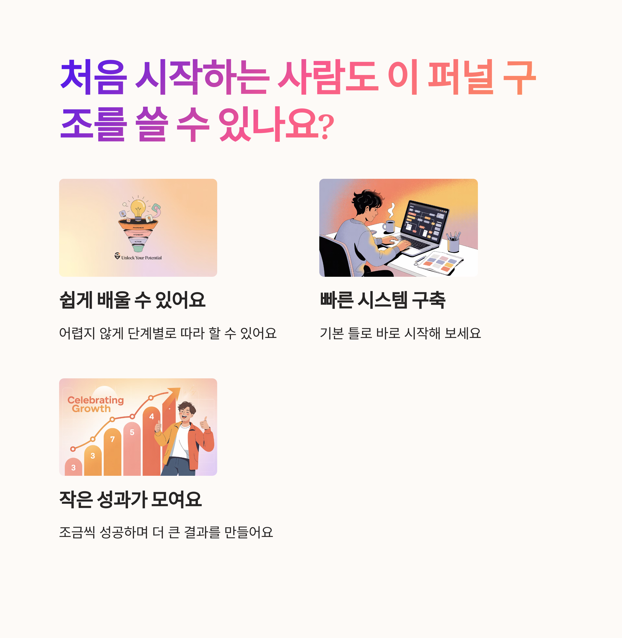 | 자동화된 퍼널 | 전환률 상승 & 수익화 루프 구축 |