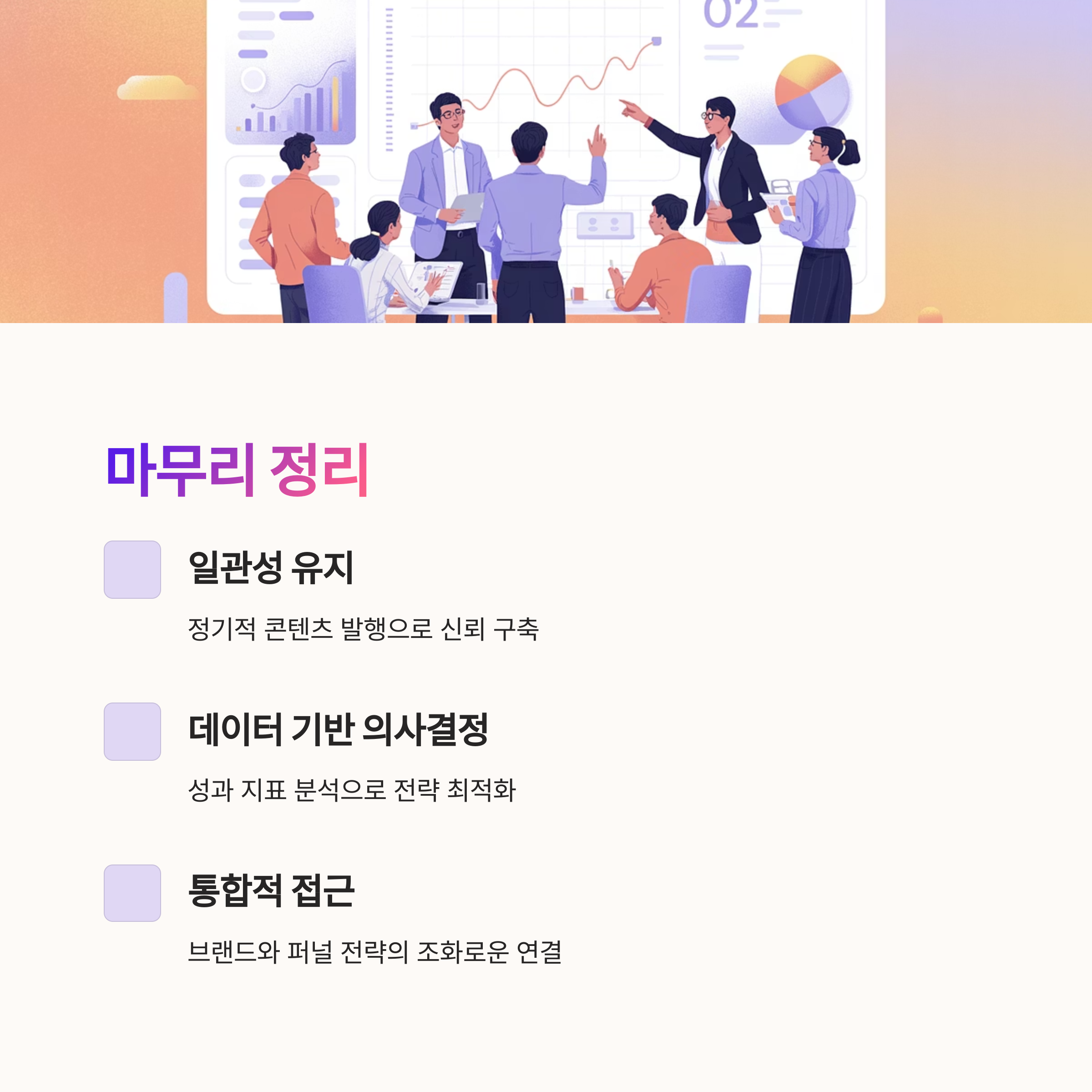 클릭은 전략으로 만들 수 있지만, 신뢰는 루틴에서 시작됩니다. 콘텐츠, 퍼널, 자동화, 브랜드가 하나의 흐름이 될 때 비로소 '성과'가 따라옵니다.