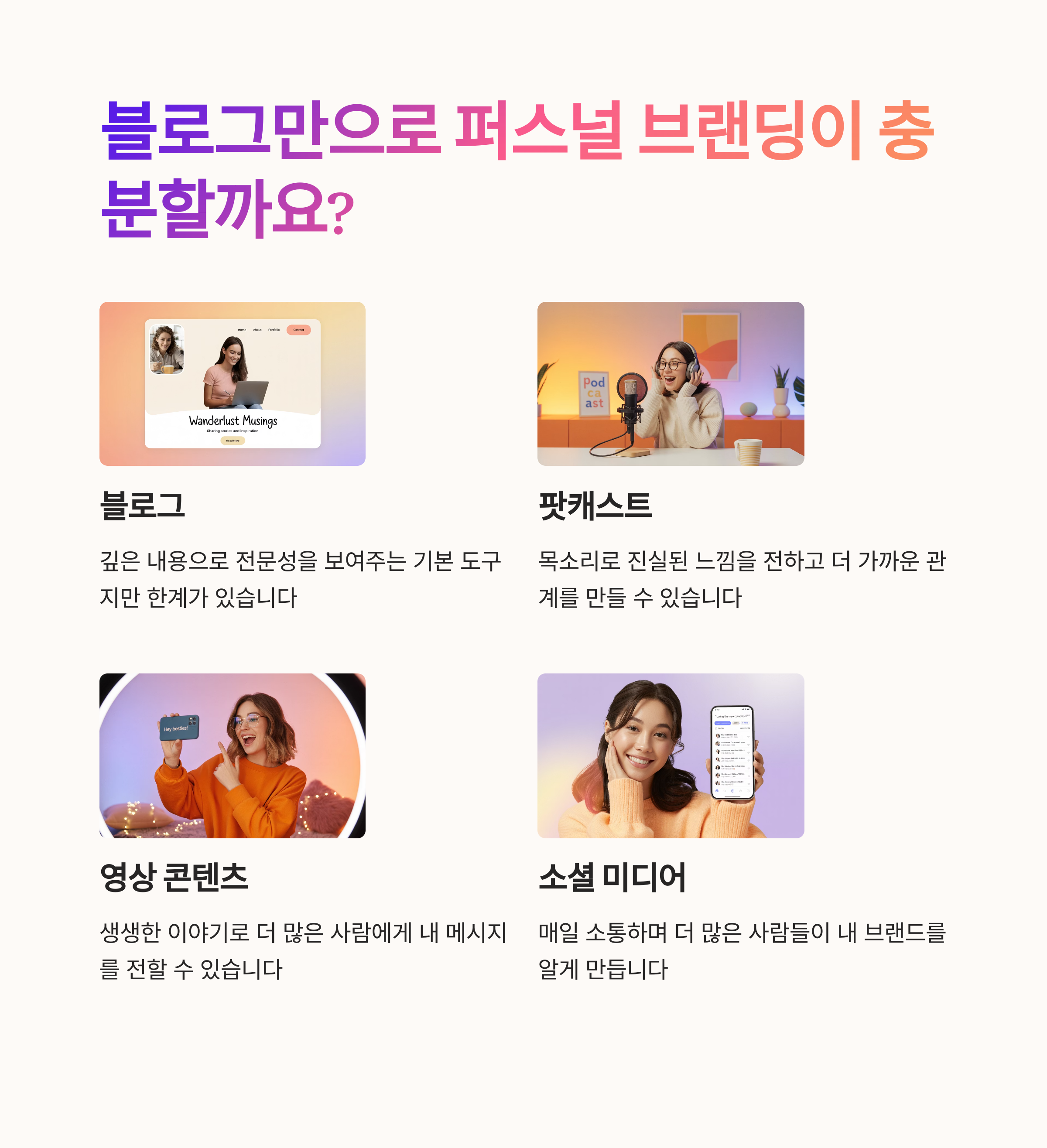 블로그는 출발점일 뿐입니다. 플랫폼 확장은 선택이 아닌 필수입니다. 하지만 블로그에서 시작된 철학과 스타일은 어디서든 유지돼야 하죠.