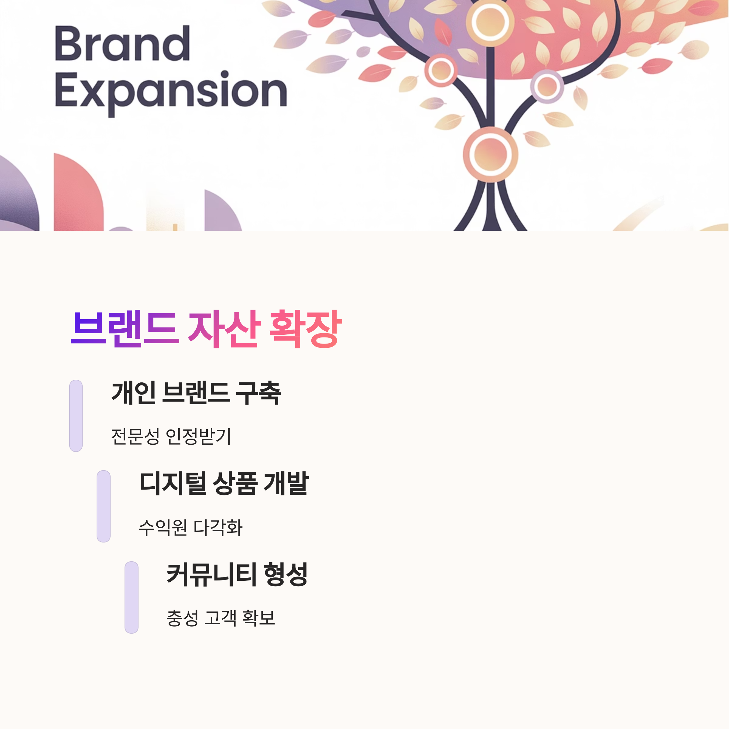 단순 정보 제공을 넘어, 교육, 커뮤니티, 템플릿, SaaS와 연결되는 확장 로드맵이 있어야 합니다. 시스템화된 콘텐츠 구조가 필수입니다.