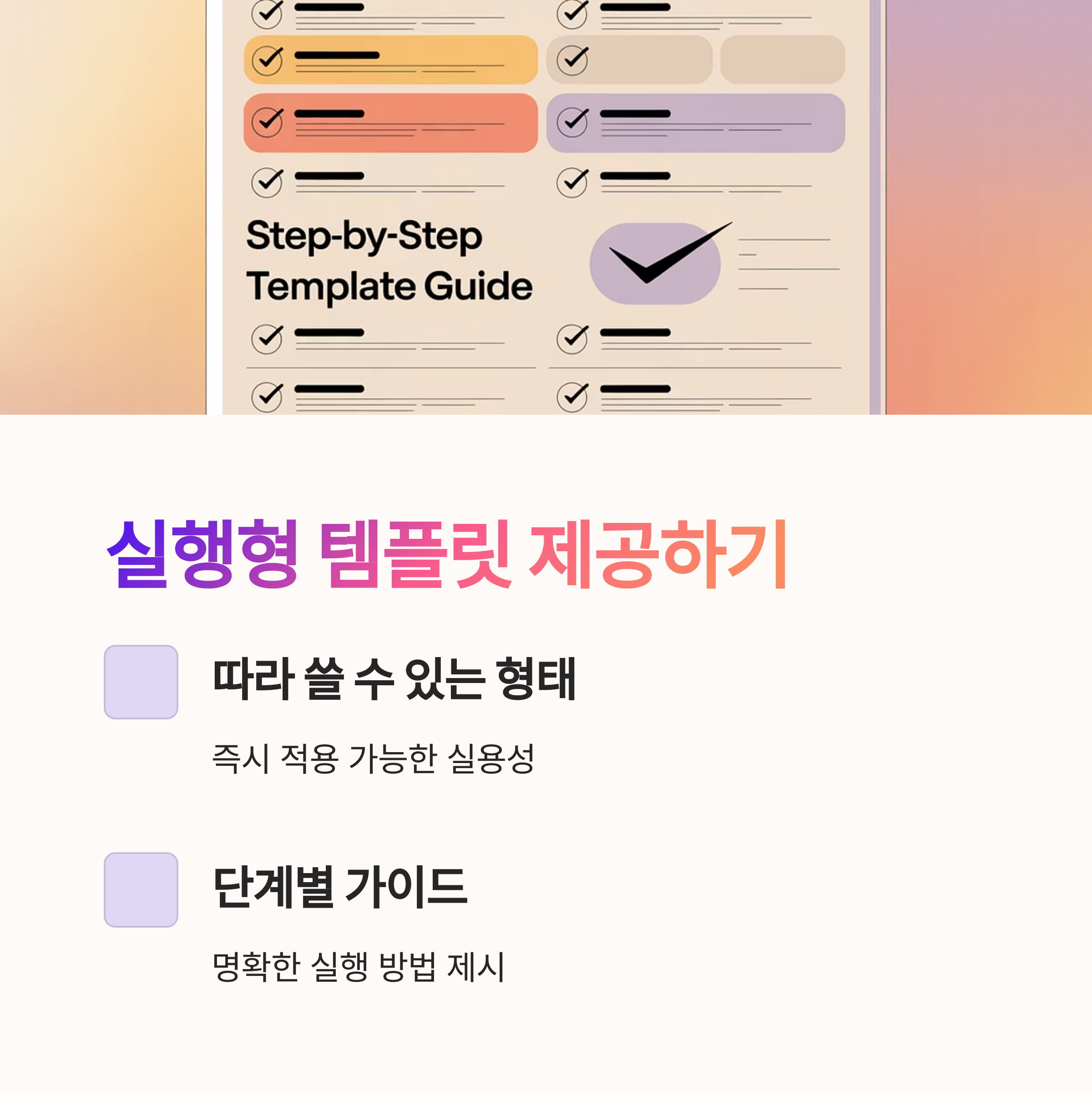 상위 블로그들의 콘텐츠는 정교하지만 너무 이론적이라는 단점이 있어요. 실행 가능한 구조가 부족하다는 거죠. 여러분은 이 틈을 노려 ‘템플릿 중심 콘텐츠’를 구성해보세요.