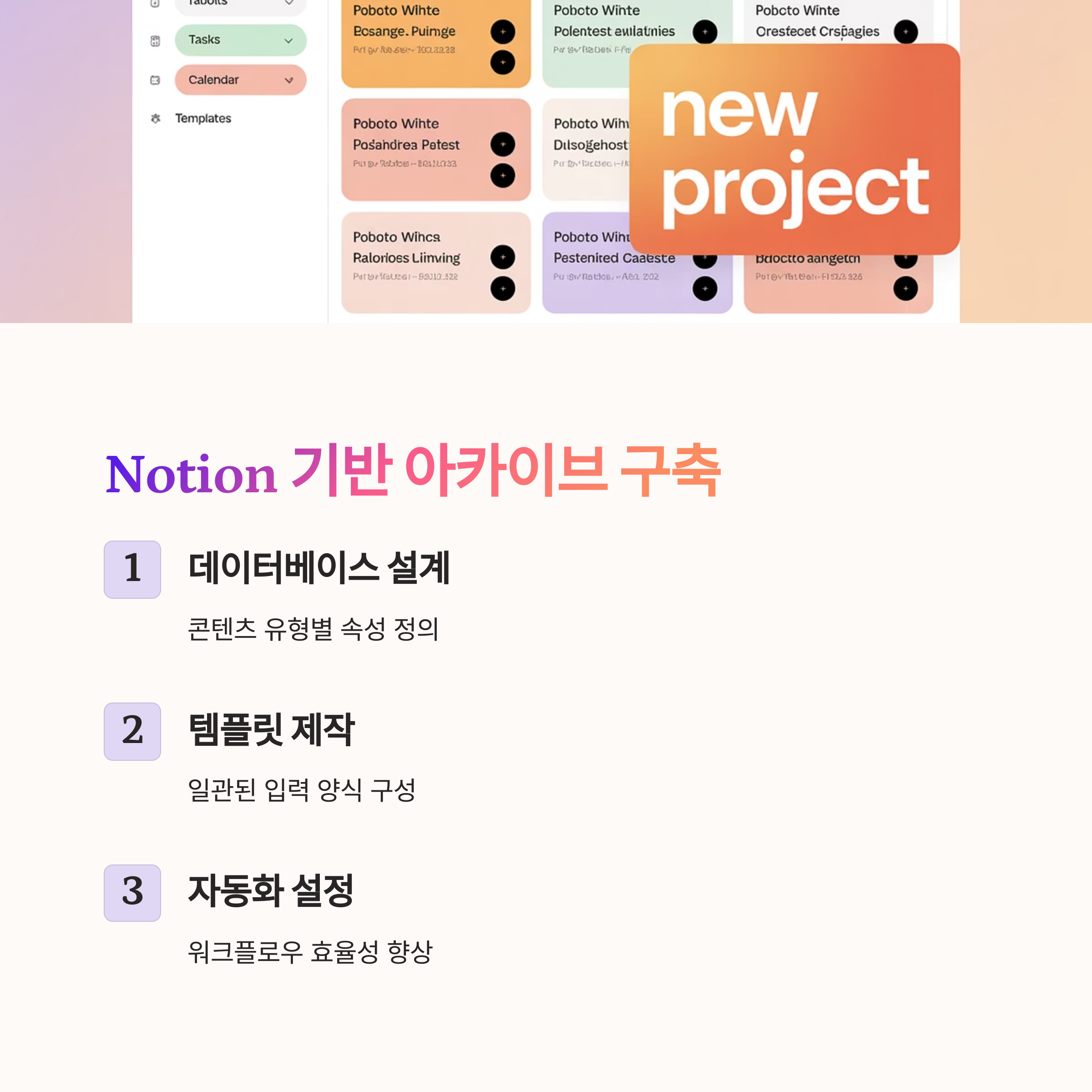 콘텐츠 아카이브를 가장 손쉽게 구현할 수 있는 도구는 바로 Notion입니다. Notion의 데이터베이스 기능과 커스터마이징 UI는 콘텐츠를 구조화된 자산으로 관리하기에 적합합니다. 수동 관리 외에도 Zapier 또는 Make 연동으로 콘텐츠 자동 등록 및 태깅이 가능합니다.