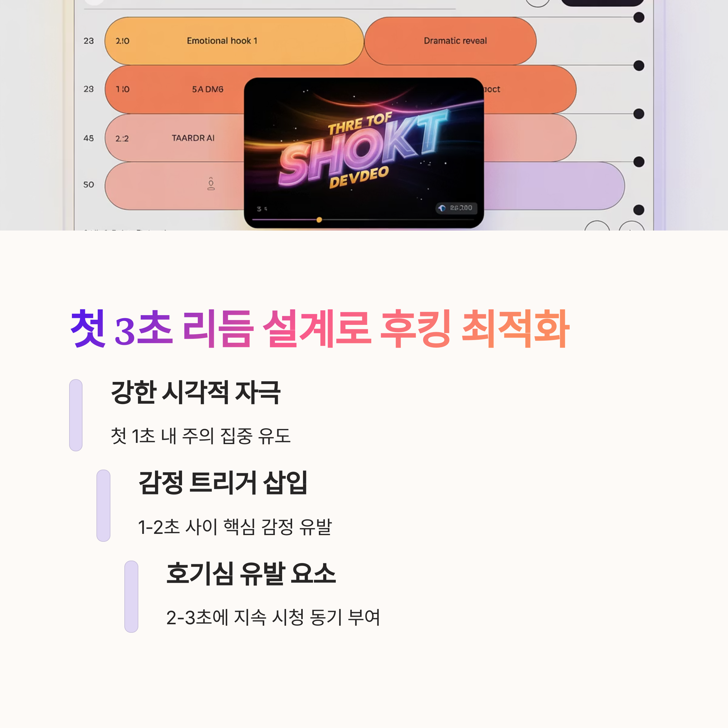 숏폼의 몰입 여부는 시작 3초 안에 결정됩니다. 이 ‘3초 리듬’은 시각, 청각, 감정 키워드가 동시에 작용하는 UX 포인트입니다. 감정형 숏폼은 후킹 문장을 단순 자극이 아닌 감정 도입부로 설계해야 합니다.