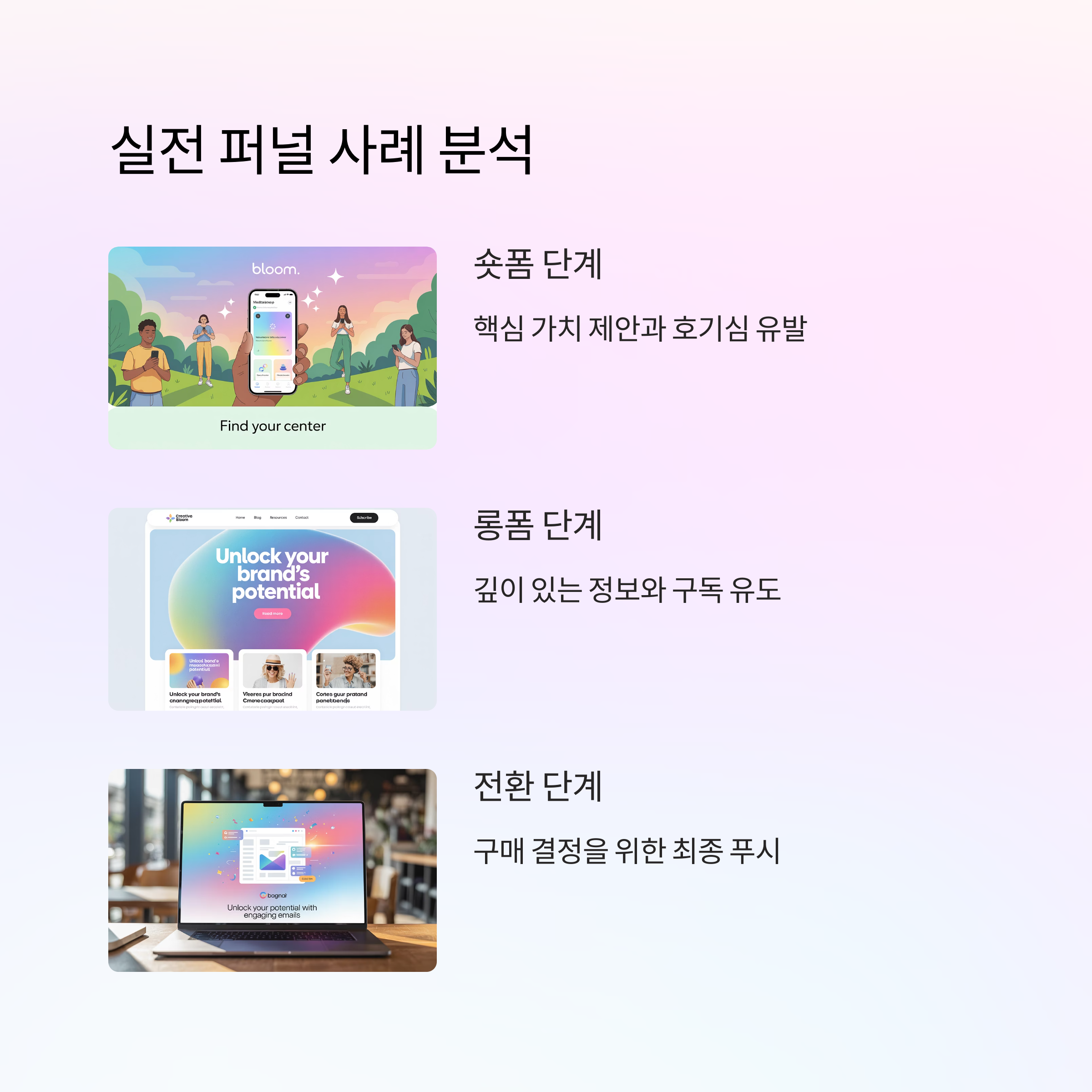전환은 한 번의 클릭이 아니라, 감정과 신뢰가 연결되는 여정입니다. 숏폼에서 끌어들인 관심을 블로그에서 확장하고, 이메일 구독으로 관계를 유지하며, 결국 구매로 전환하는 퍼널을 구조화해야 합니다.