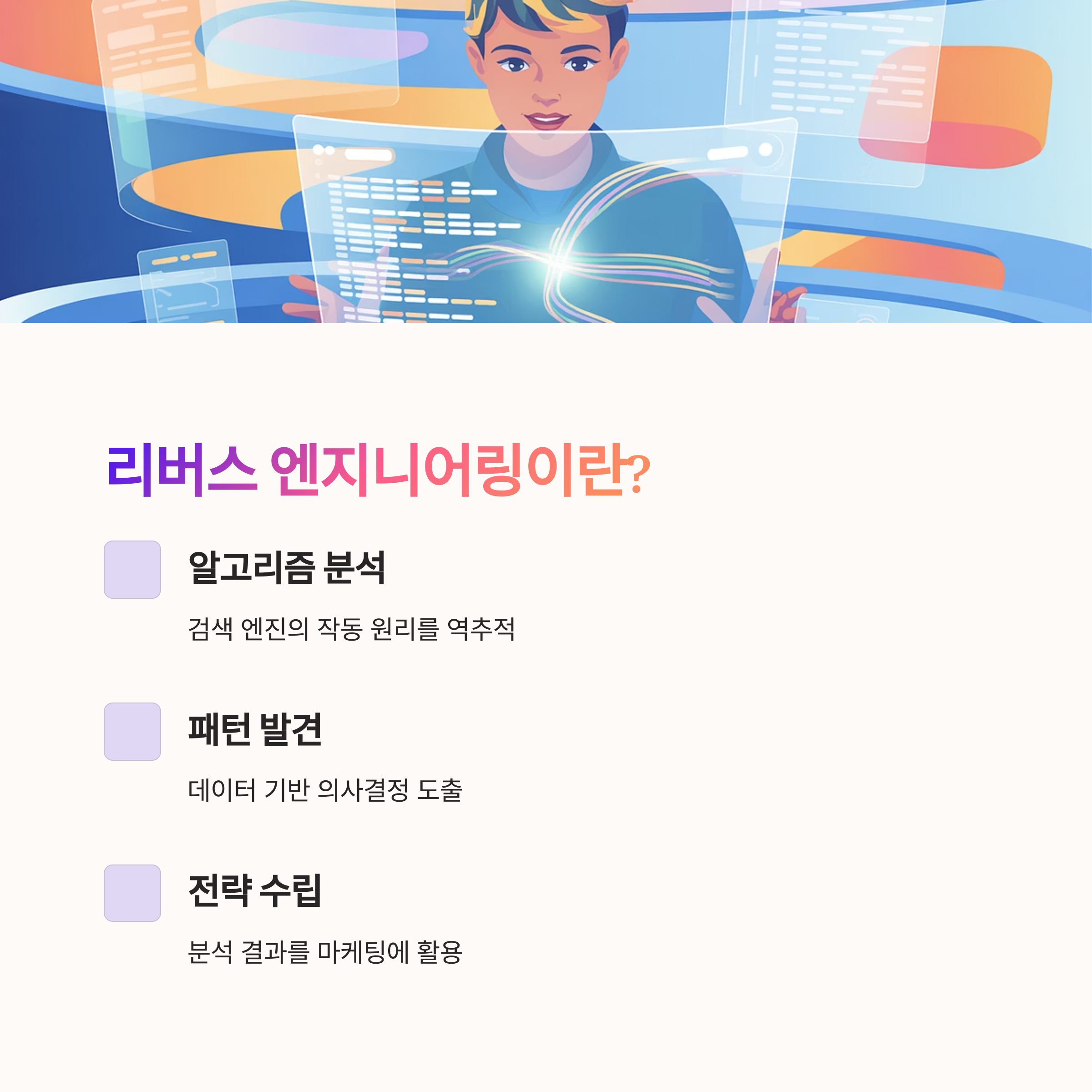 알고리즘 리버스 엔지니어링 콘텐츠는 단순한 SEO를 넘어서, 검색 시스템을 해독하고 거기에 맞춰 콘텐츠를 전략적으로 설계하는 방식입니다.