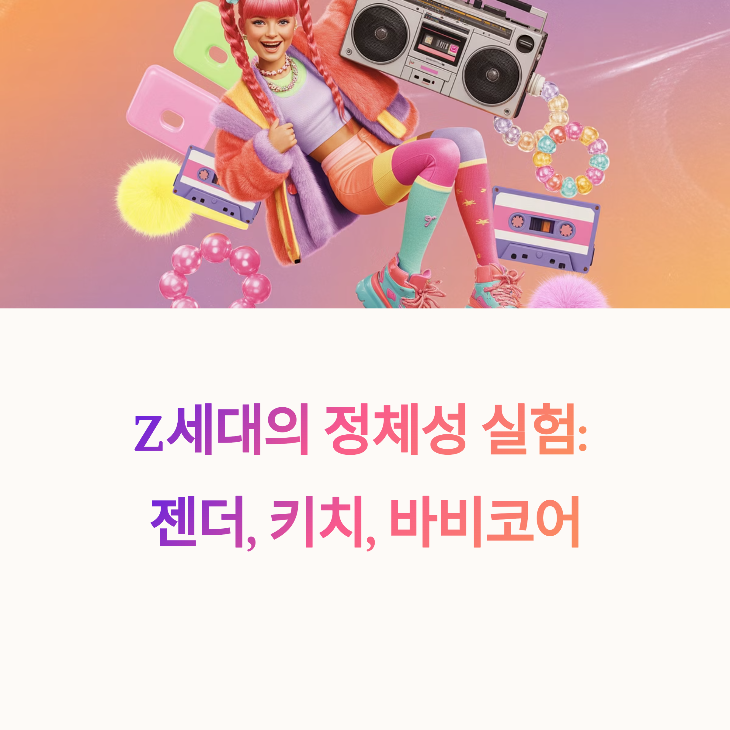 키치(Kitsch)는 원래 촌스럽고 유치한 미학을 지칭하는 단어였습니다. 하지만 2020년 이후 Z세대는 키치를 단순한 조롱의 대상으로 보지 않습니다. 오히려 “과잉된 감정”, “어색한 미학”, “의도된 유치함” 속에서 자신을 표현하고, 자유를 탐색합니다.