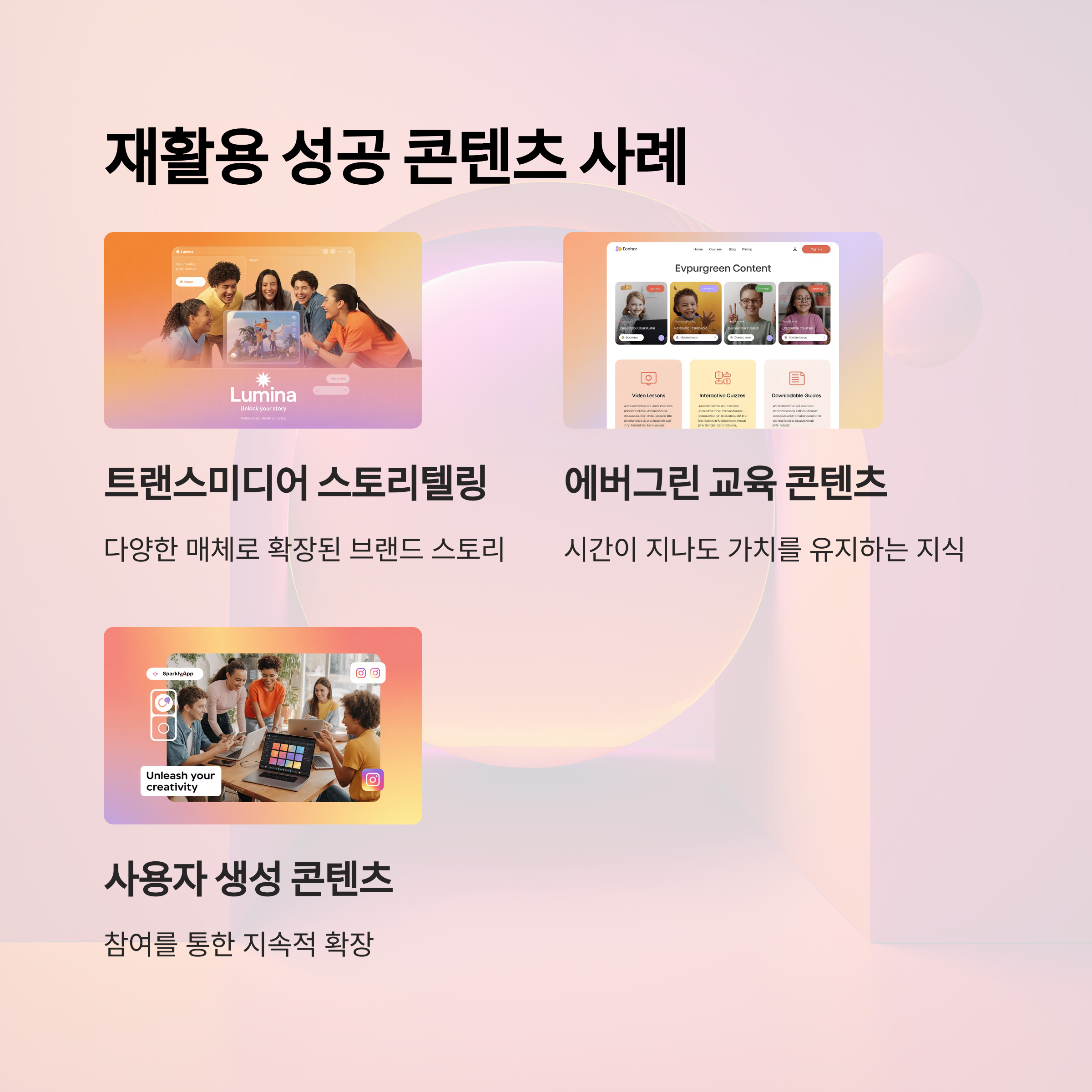 - 형태 유연성: 카드뉴스, 영상, 슬라이드, 블로그 등 다양한 형식으로 재구성 가능한 내러티브 구조