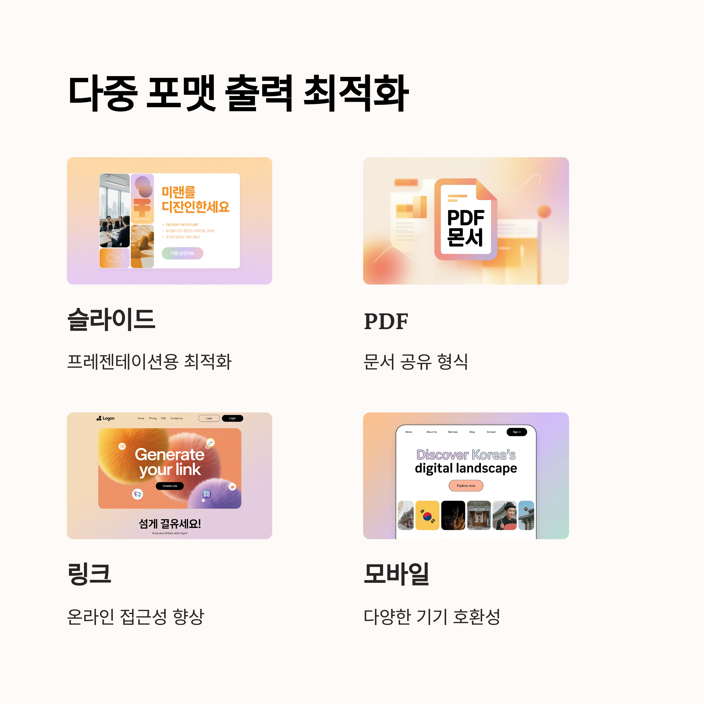 다중 포맷(슬라이드, PDF, 링크) 출력을 위한 최적화 전략