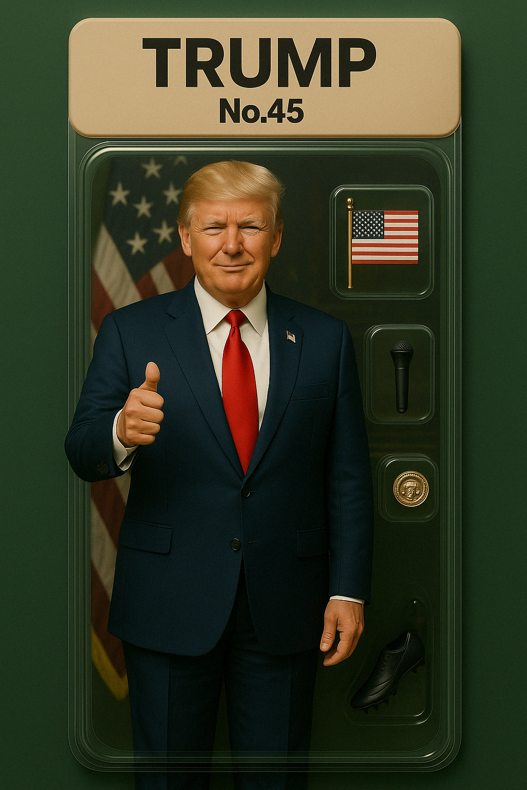 - 도널드 트럼프: 별무늬 배경, 현금, 골프채