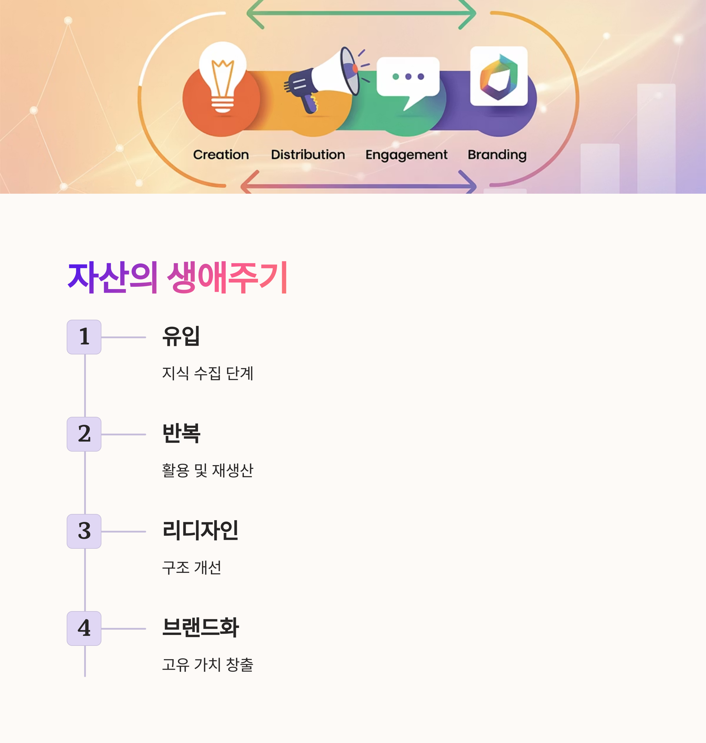 자산의 생애주기: 유입 → 반복 → 리디자인 → 브랜드화