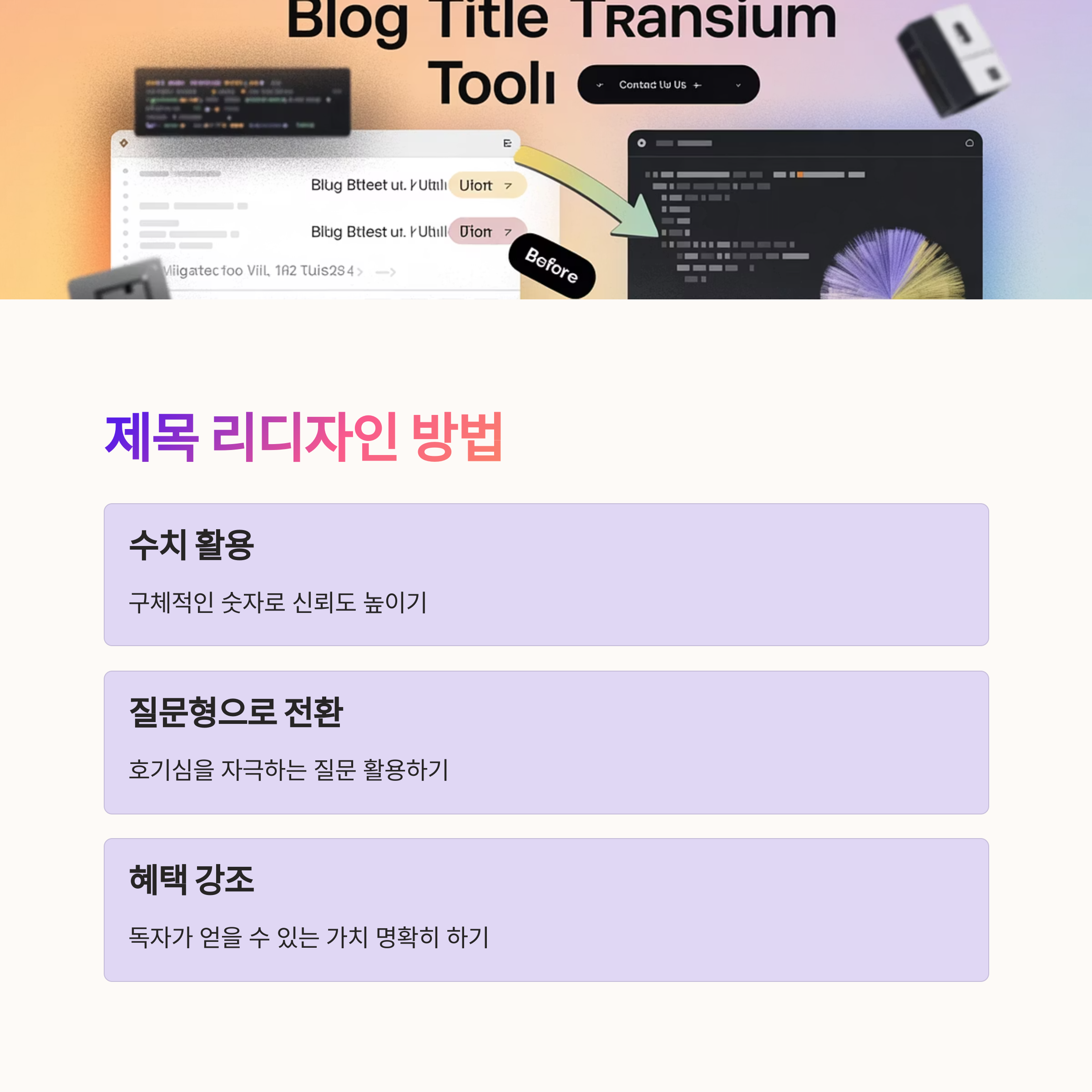 성과가 안 나오는 제목을 그냥 두고 보지 마세요. 리디자인만 잘해도 놀라운 반응을 이끌어낼 수 있어요. 특히 전환률이 낮았던 콘텐츠는 제목에서 실망감을 안겨줬을 가능성이 높거든요. 아래는 제가 자주 활용하는 리디자인 전략입니다.