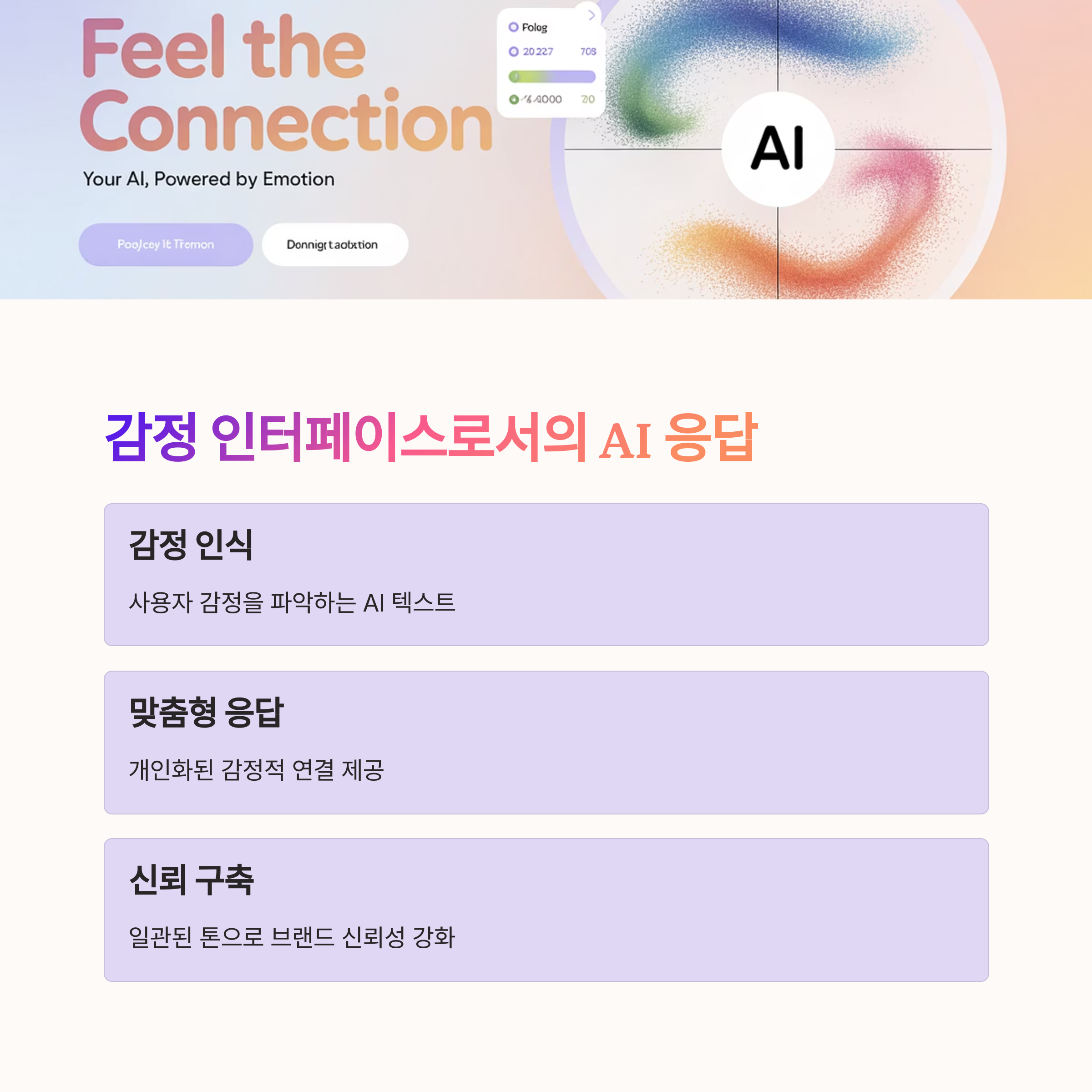 사용자는 내용보다 ‘느낌’을 기억합니다. AI의 감성적 응답은 신뢰, 공감, 몰입도를 극적으로 향상시키는 UX 자산입니다.