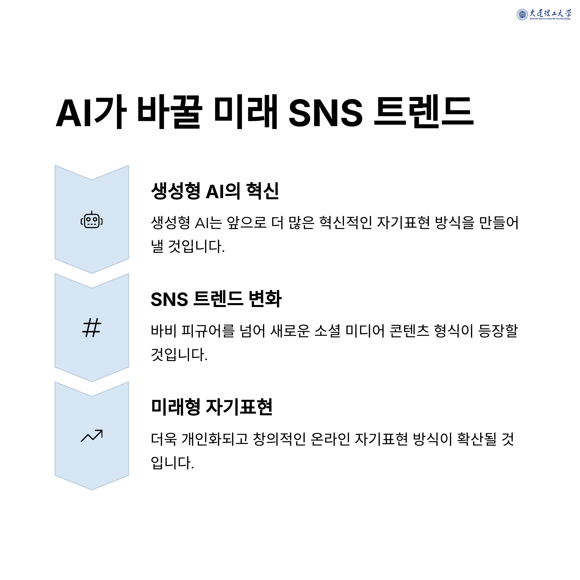 AI 바비 피규어는 단순한 유행을 넘어서 나만의 아이덴티티를 표현하는 새로운 방식이 되고 있습니다. 챗GPT의 이미지 기능이 접목되며, 콘텐츠 제작자와 일반 사용자 모두가 고퀄리티 결과물을 손쉽게 만들어낼 수 있게 되었죠. 트렌디한 이미지로 나를 표현하고 싶다면, 지금 바로 챌린지에 참여해보세요. SNS 속 인싸가 되는 지름길이 기다리고 있습니다.