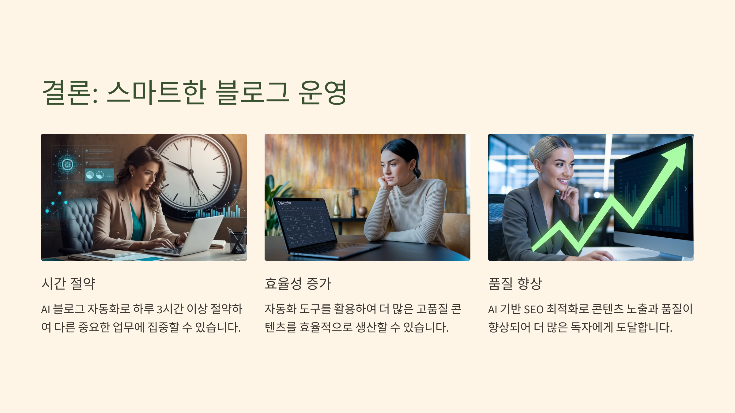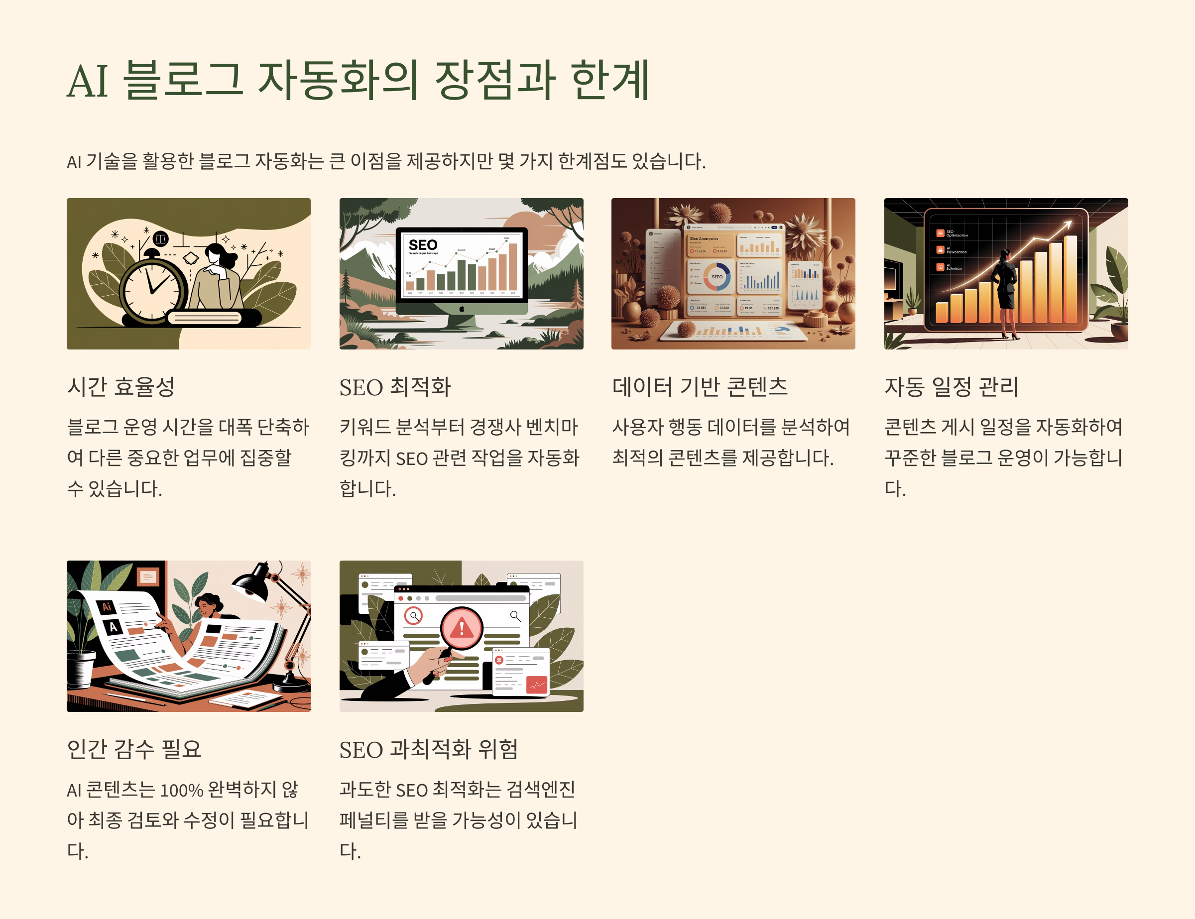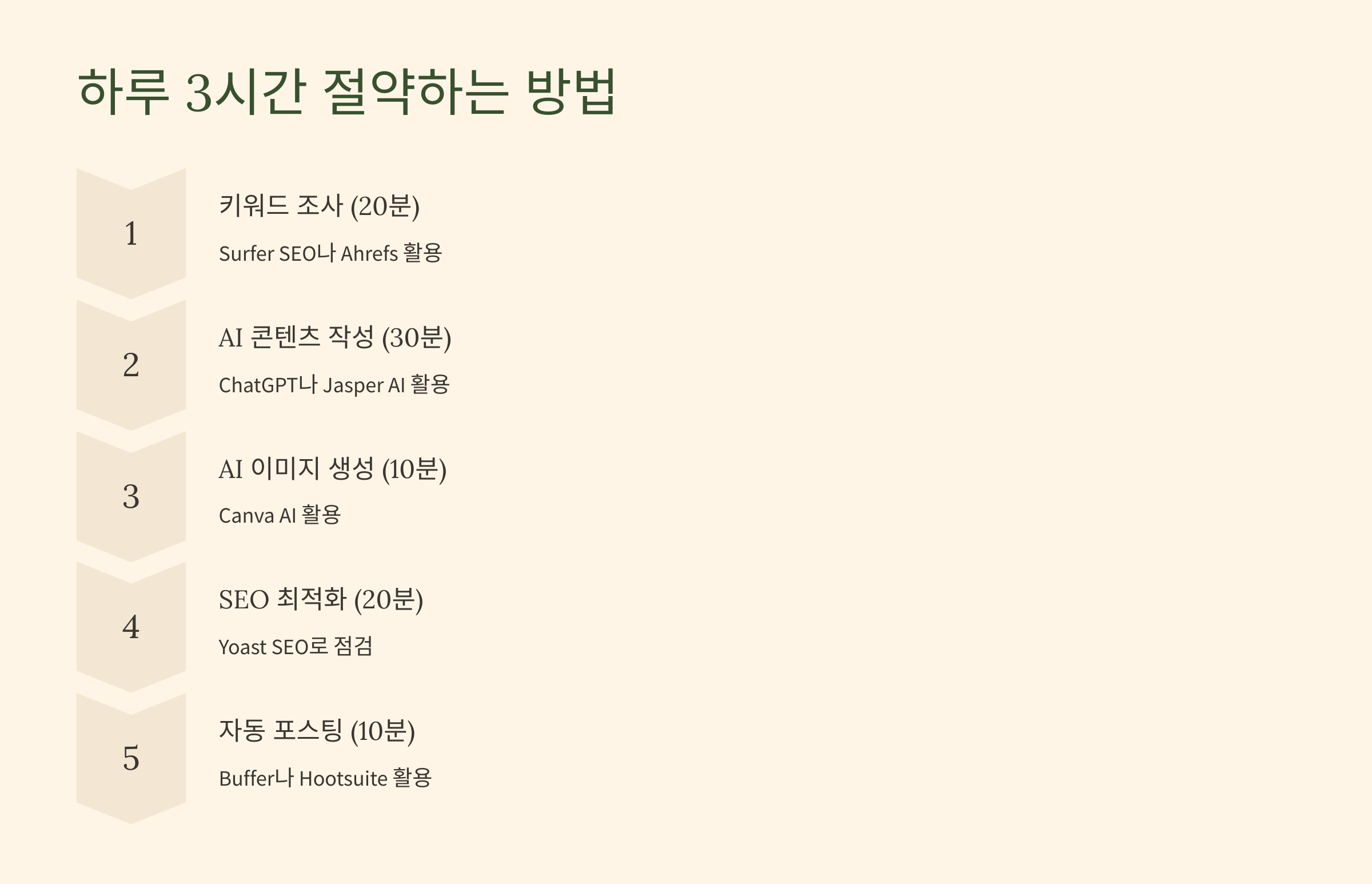 | AI 블로그 자동화로 하루 3시간 절약하는 방법 (0) | 2025.03.07 |