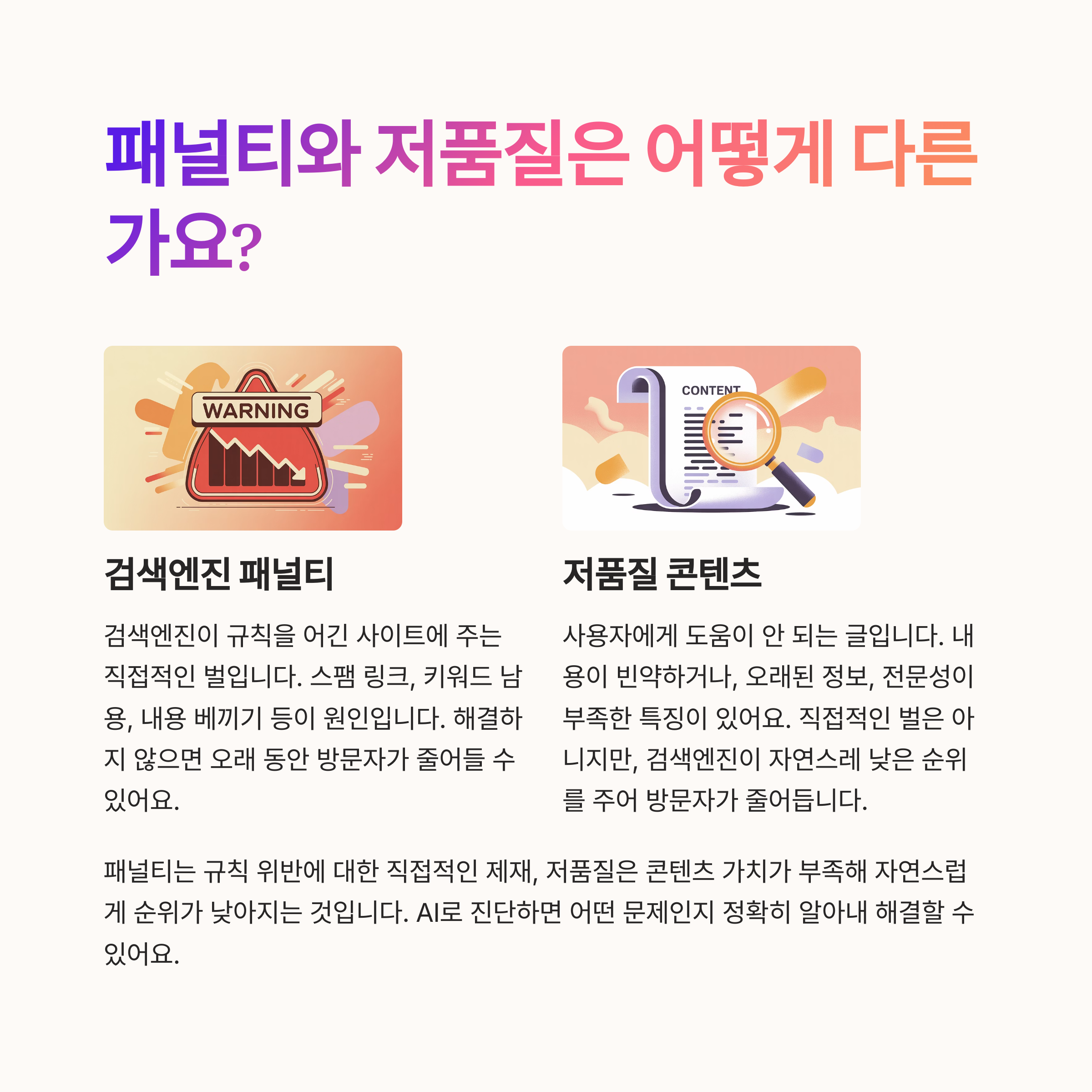 검색 유입이 끊기고 콘텐츠가 순식간에 사라지는 경험, 정말 당황스럽죠. 하지만 저품질과 패널티는 막연한 공포가 아닙니다.