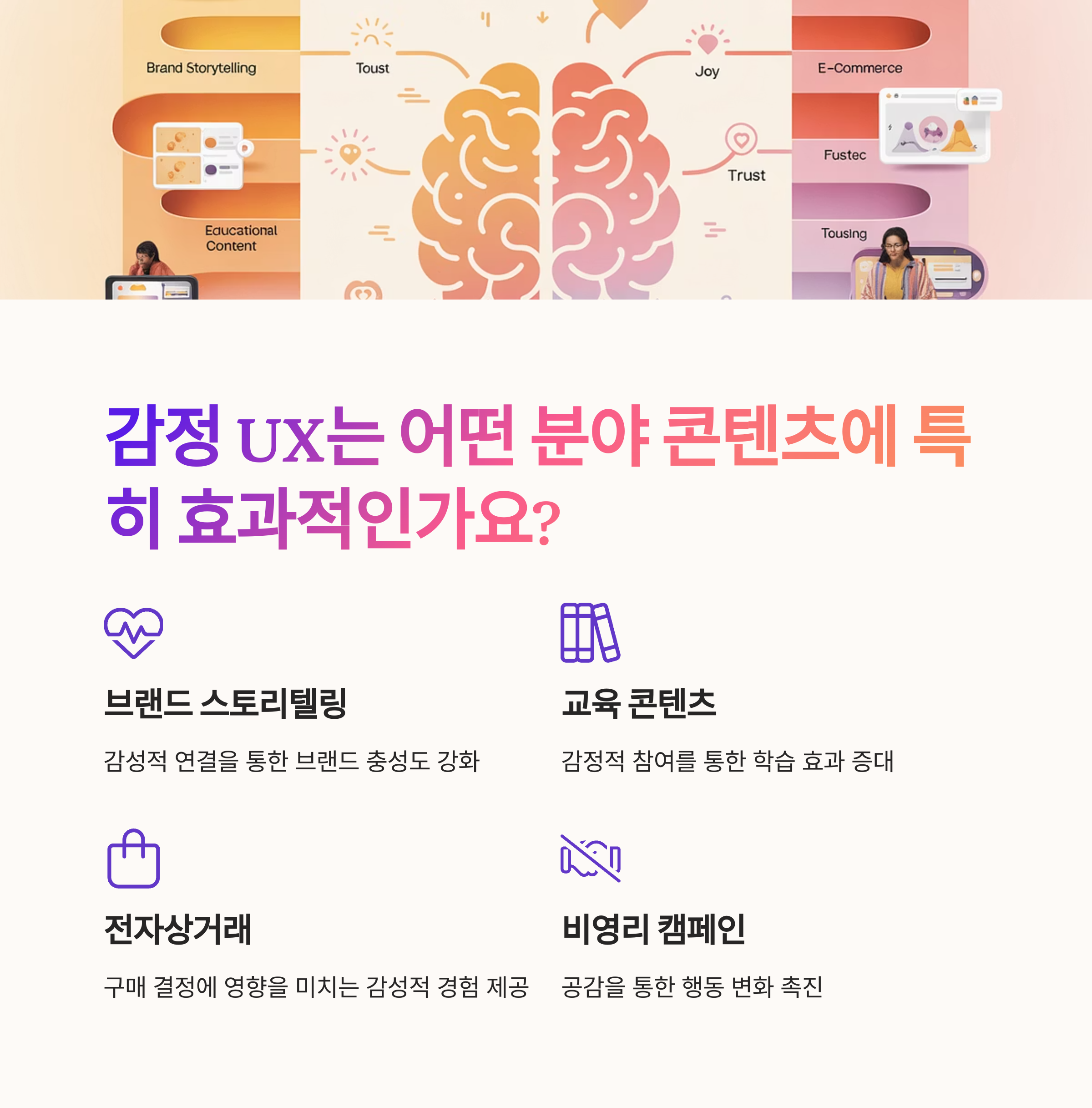 교육, 자기계발, 브랜드 콘텐츠, 서비스 소개 등 ‘결정에 감정이 개입되는’ 거의 모든 분야에서 효과적입니다.