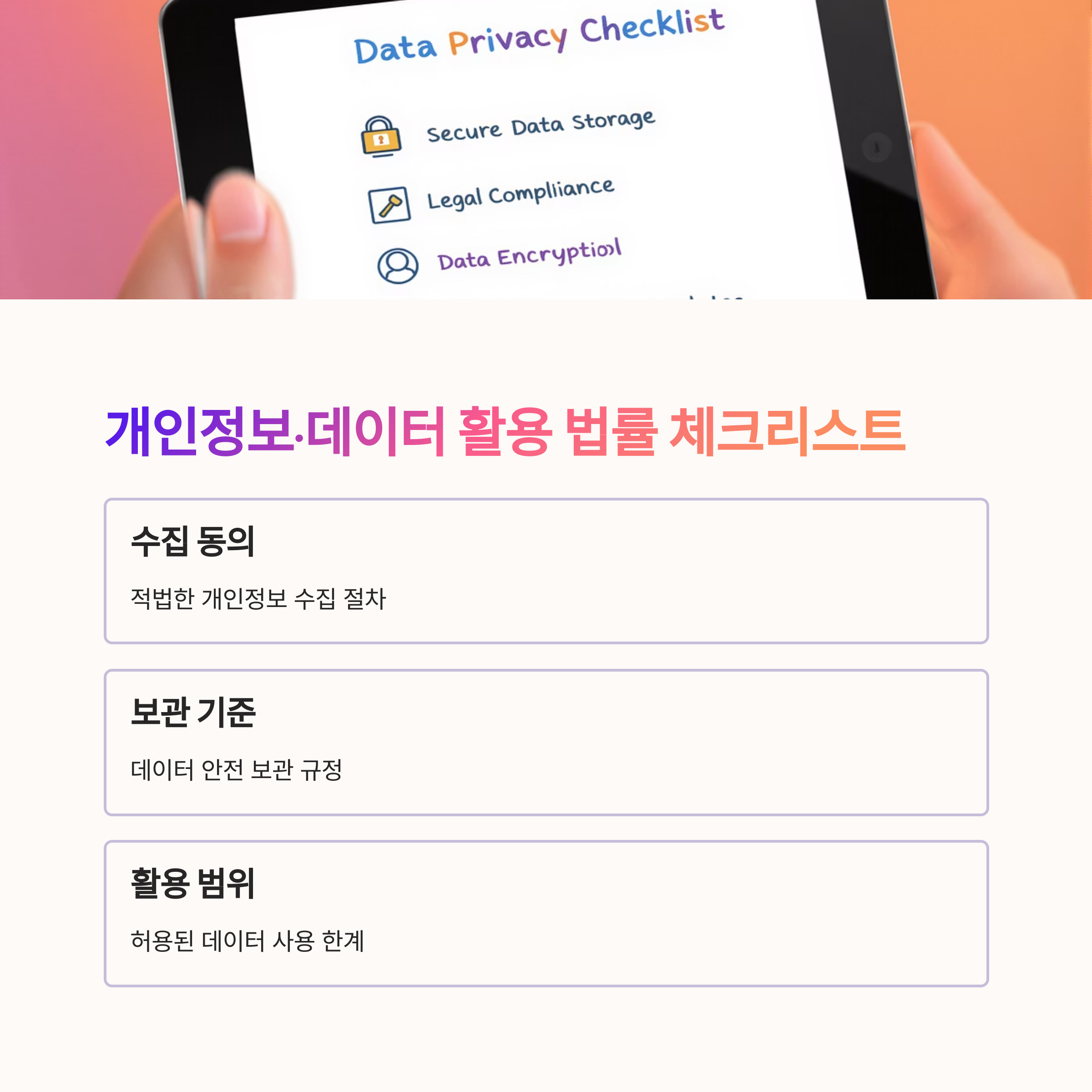 콘텐츠 제작에 사용되는 데이터가 ‘개인정보’일 경우, 반드시 법률 기준을 지켜야 해요. 특히 이메일, 위치 정보, 행동 로그 등은 민감 데이터로 분류되며, 수집·활용 시 명확한 동의와 목적 고지가 필요합니다. AI 도구에 입력하는 데이터도 예외가 아니에요. 기업용이 아닌 일반 AI에 고객 정보를 넣는 건 명백한 위법 가능성이 있습니다.