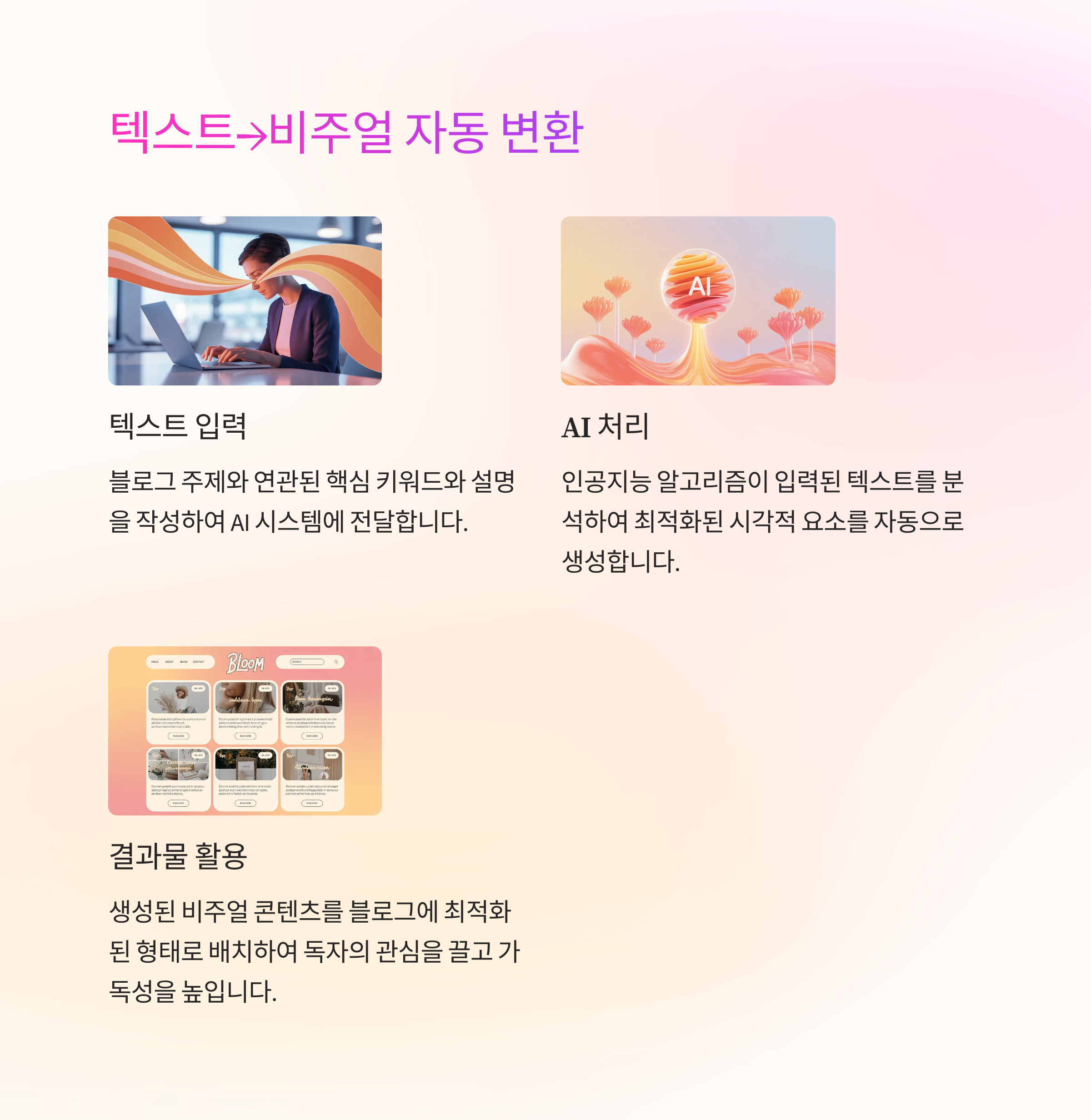 ‘텍스트만 입력하면 끝’! 요즘은 블로그 글 한 문단만 있어도, AI가 이미지·동영상으로 자동 변환해주는 시대입니다. 한 번 워크플로우만 세팅하면 매번 같은 프로세스를 반복할 필요 없이, 블로그-유튜브-인스타용 콘텐츠가 한 번에 만들어져요. 제가 실제로 사용하는 자동 변환 프로세스를 리스트로 정리했습니다.