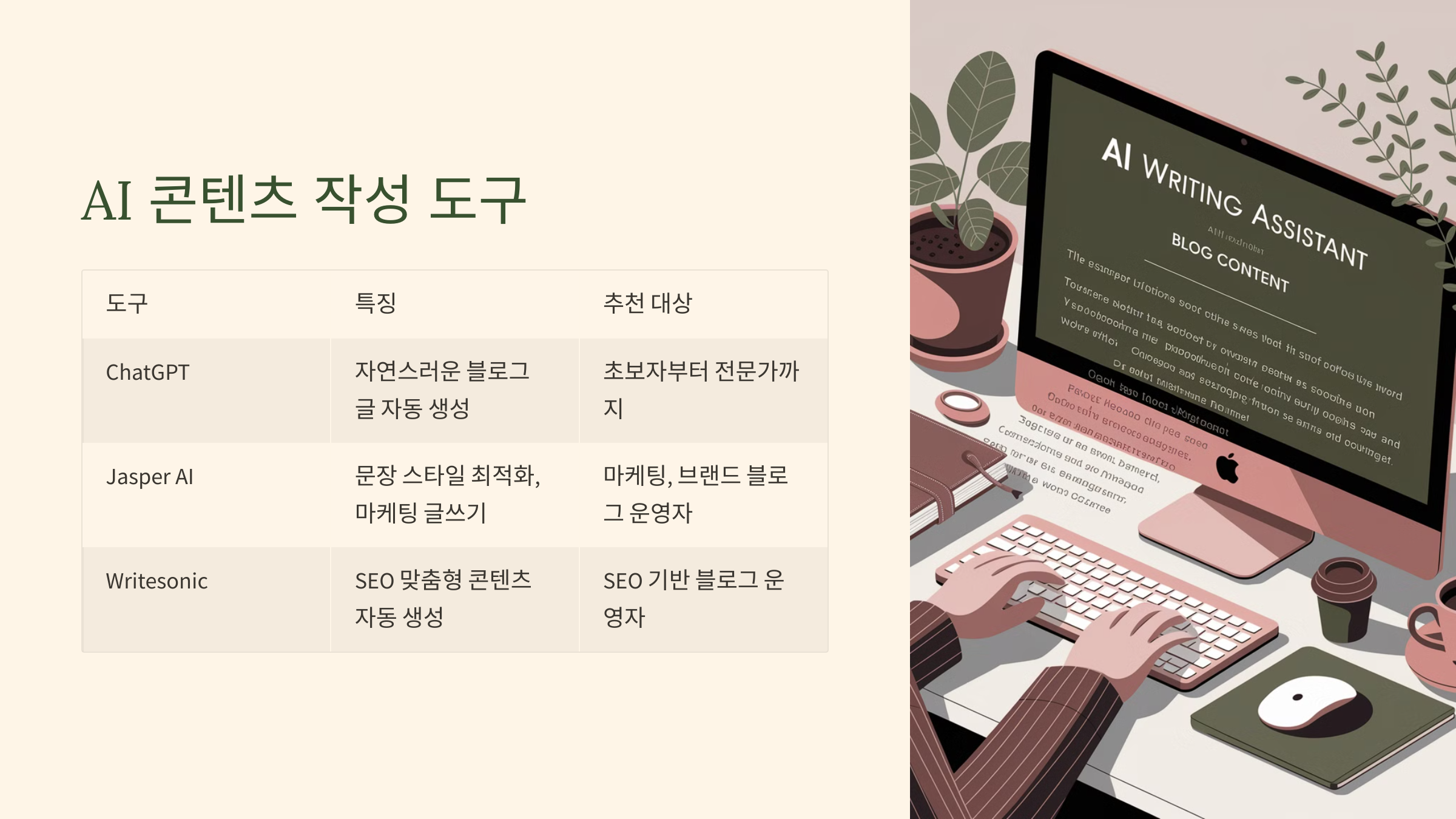 | AI 블로그 자동화로 하루 3시간 절약하는 방법 (0) | 2025.03.07 |