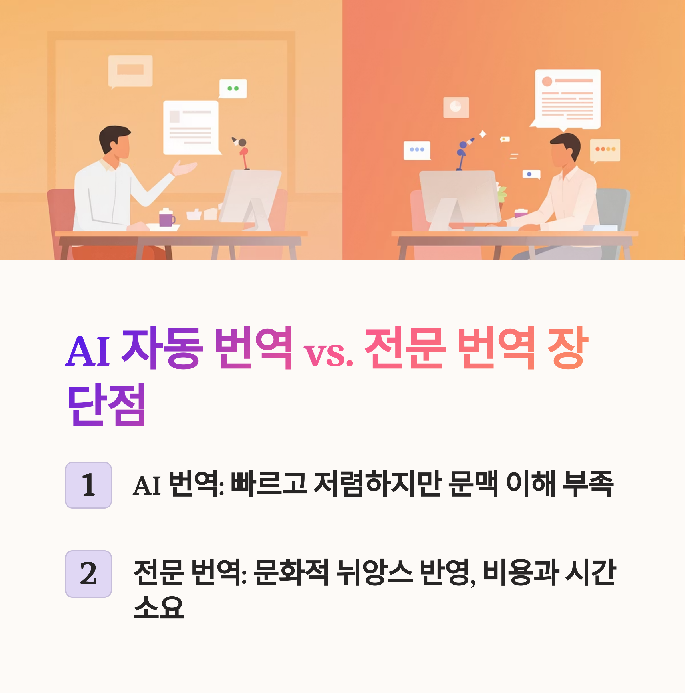 AI 자동 번역 vs. 전문 번역 장단점