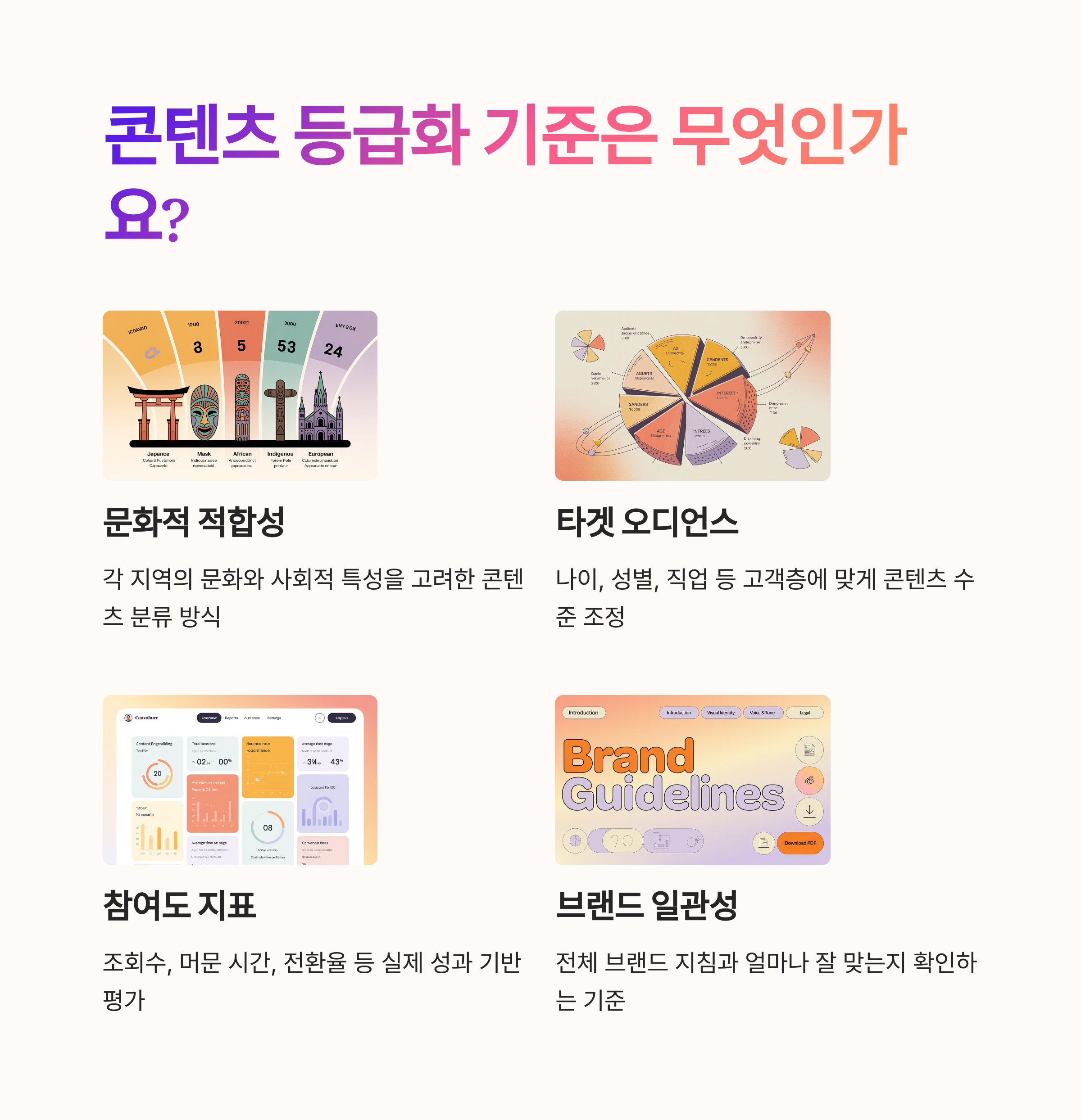 각국의 문화적 배경은 콘텐츠의 전개 방식과 행동 유도 문구(CTA)에도 깊이 영향을 줍니다. 같은 제품/서비스를 소개하더라도 서사 구조 자체를 리디자인해야 전환이 발생합니다.