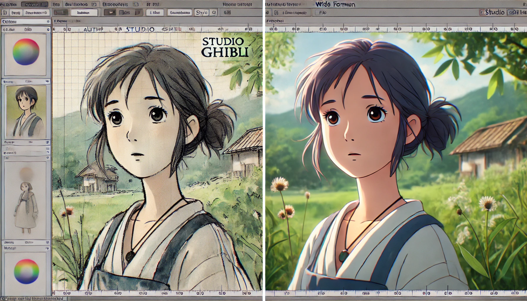 실제 지브리 이미지와 AI 생성 이미지 비교