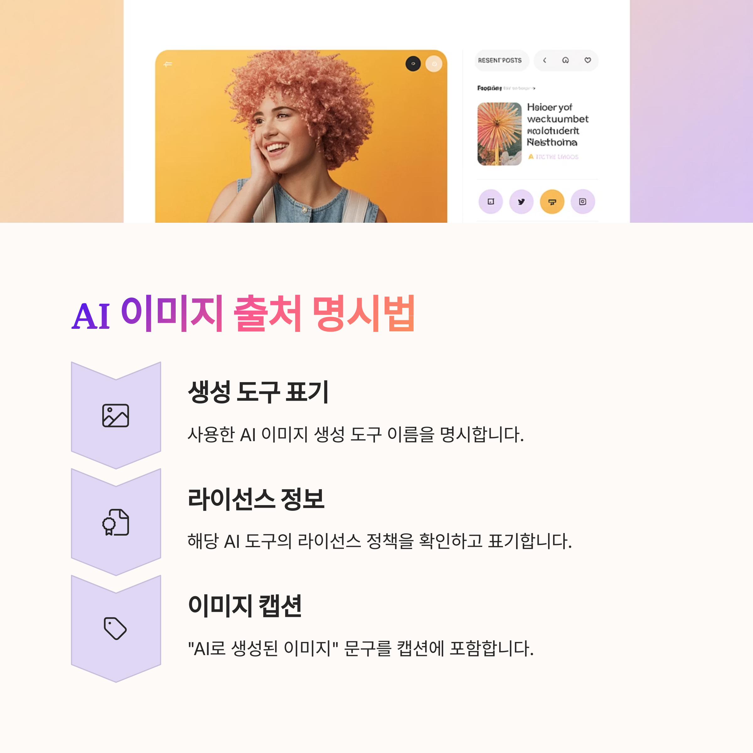 - ‘AI 생성 이미지’임을 캡션 또는 본문에 표기