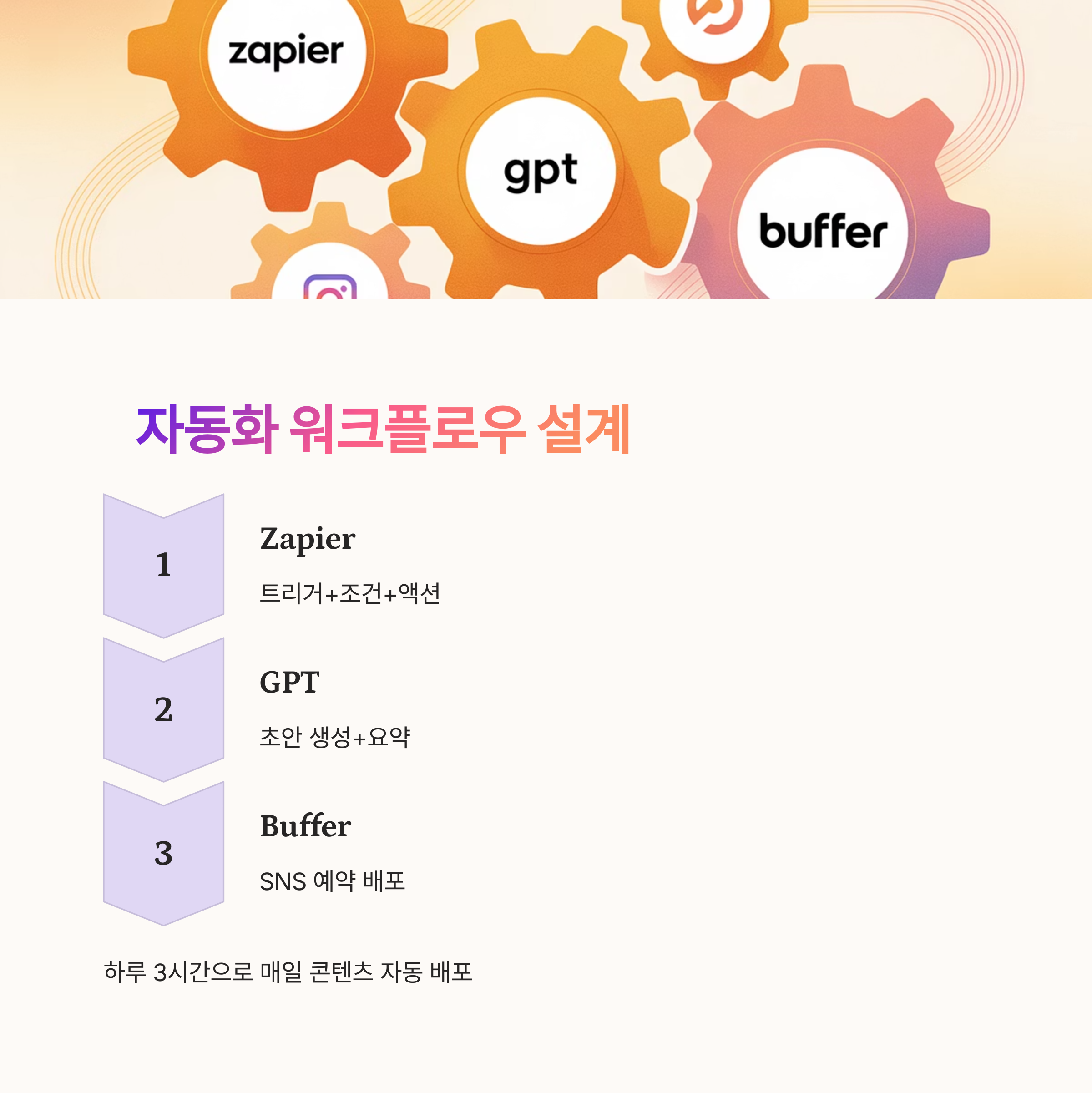 하루 3시간 일하면서 매일 콘텐츠가 배포된다면 어떨까요? 그것이 가능한 이유는 자동화된 워크플로우 설계 덕분입니다.