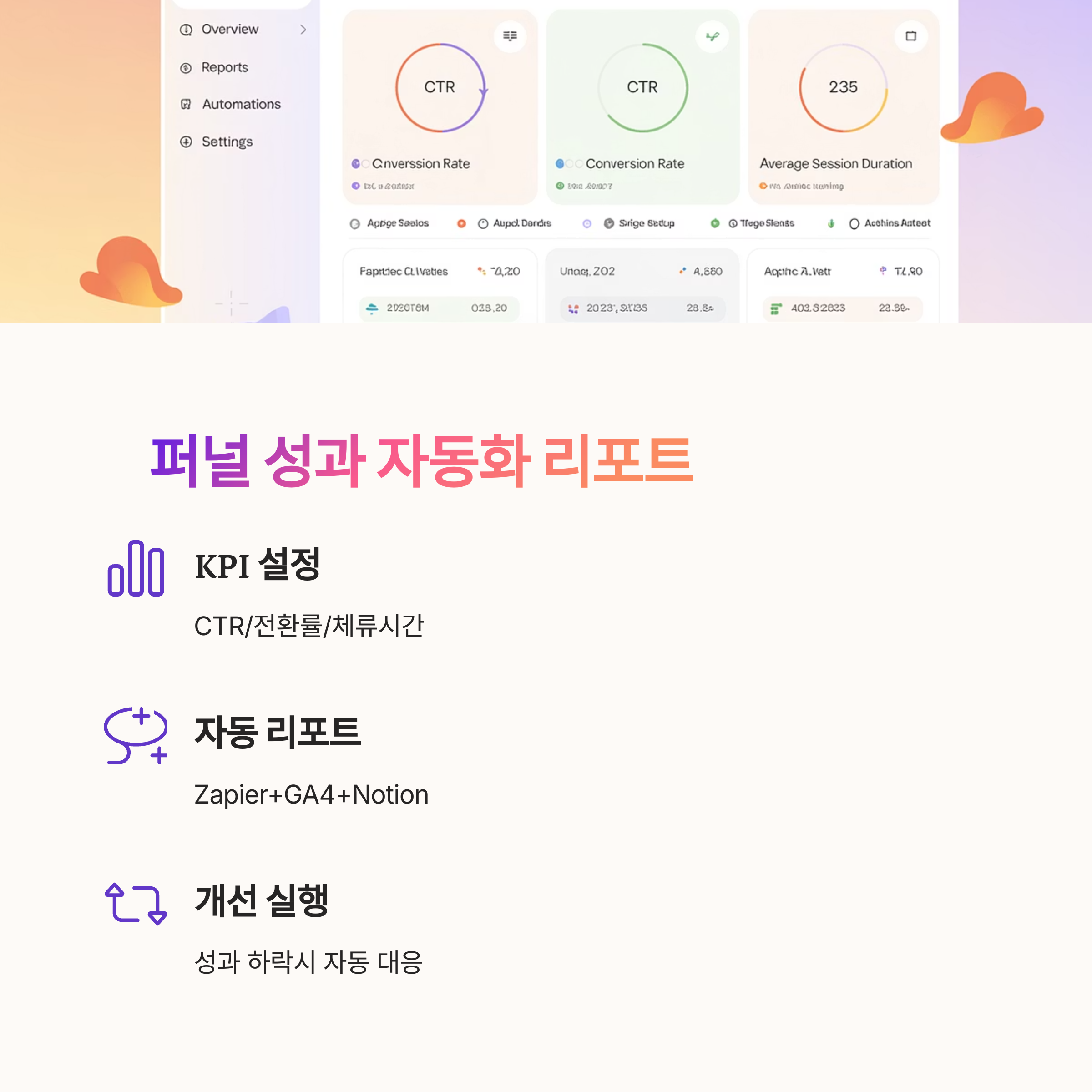 - Zapier + GA4 + Notion → 자동 KPI 리포트화
