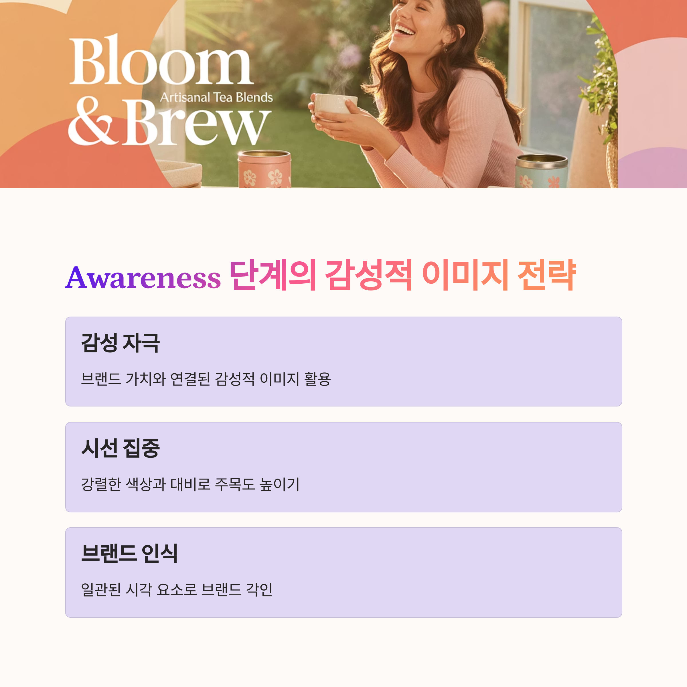 Awareness 단계의 콘텐츠는 ‘공감’과 ‘끌림’을 목표로 해야 합니다. 이때 감성을 자극하는 이미지, 직관적인 색상 대비, 여백의 미는 사용자의 첫 클릭과 머무름을 결정짓습니다.